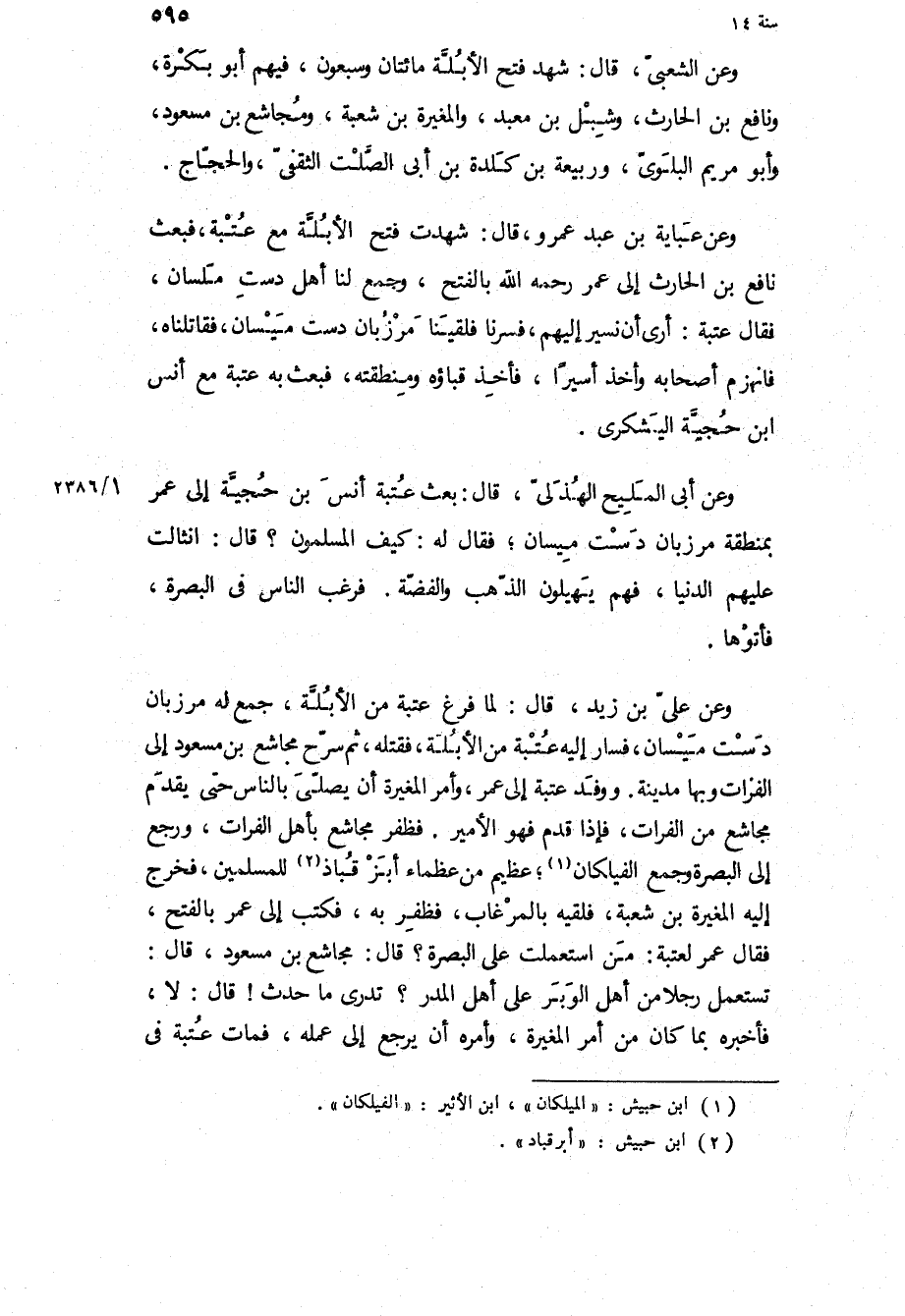 وَعَنِ الشَّعْبِيِّ، قَالَ: شَهِدَ فَتْحَ الأُبُلَّةُ مِائَتَانِ وَسَبْعُونَ، فِيهِمْ أَبُو بَكْرَةَ، وَنَافِعُ بْنُ الْحَارِثِ، وَشِبْلُ بْنُ مَعْبَدٍ، وَالْمُغِيرَةُ بْنُ شُعْبَةَ، وَمُجَاشِعُ بْنُ مَسْعُودٍ، وَأَبُو مَرْيَمَ الْبَلَوِيُّ، وَرَبِيعَةُ بْنُ كِلْدَةَ بْنِ أَبِي الصَّلْتِ الثَّقَفِيُّ، وَالْحَجَّاجُ.