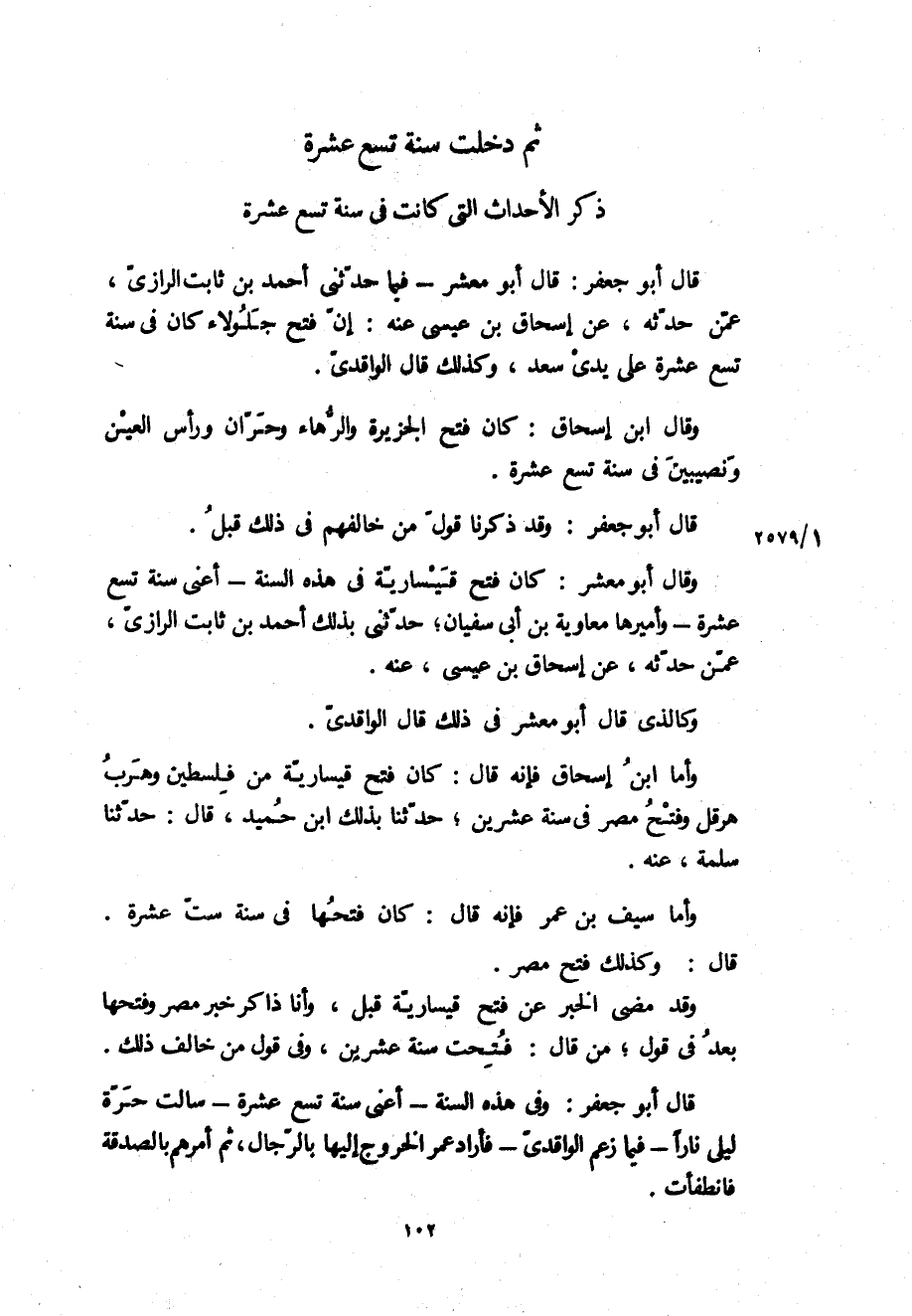 وقال ابن إسحاق: كان فتح الجزيرة والرهاء وحران ورأس العين ونصيبين في سنة تسع عشرة.