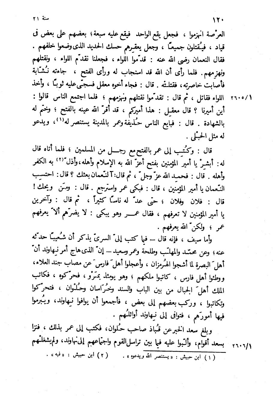 قَالَ: وَكَتَبَ إِلَى عُمَرَ بِالْفَتْحِ مَعَ رَجُلٍ مِنَ الْمُسْلِمِينَ، فَلَمَّا أَتَاهُ قَالَ لَهُ: أَبْشِرْ يَا أَمِيرَ الْمُؤْمِنِينَ بِفَتْحٍ أَعَزَّ اللَّهُ بِهِ الإِسْلامَ وَأَهْلَهُ، وَأَذَلَّ بِهِ الْكُفْرَ وَأَهْلَهُ قَالَ: فَحَمَدَ اللَّهُ عَزَّ وَجَلَّ، ثُمَّ قَالَ: النُّعْمَانُ بَعَثَكَ؟ قَالَ: احْتَسَبِ النُّعْمَانَ يَا أَمِيرَ الْمُؤْمِنِينَ، قَالَ: فَبَكَى عُمَرُ وَاسْتَرْجَعَ قَالَ: وَمَنْ وَيْحَكَ! قَالَ: فُلانٌ وَفُلانٌ، حَتَّى عَدَّ لَهُ نَاسًا كَثِيرًا، ثُمَّ قَالَ: وَآخَرِينَ يَا أَمِيرَ الْمُؤْمِنِينَ لا تَعْرِفُهُمْ، فَقَالَ عُمَرُ وَهُوَ يَبْكِي: لا يَضُرُّهُمْ أَلا يَعْرِفَهُمْ عُمَرُ، وَلَكِنَّ اللَّهَ يَعْرِفُهُمْ.