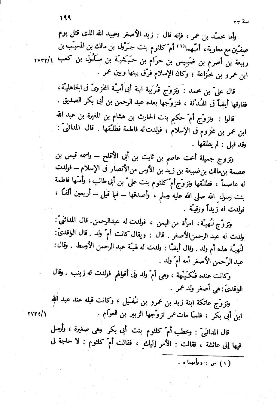 وأما مُحَمَّد بْن عمر، فإنه قال: زيد الأصغر وعبيد اللَّه الذي قتل يوم صفين مع معاوية، أمهما أم كلثوم بنت جرول بْن مالك بْن المسيب بْنُ رَبِيعَةَ بْنِ أَصْرَمَ بْنِ ضُبَيْسِ بْنِ حرام بْن حبشية بن سلول بن كعب ابن عمرو بْن خزاعة، وكان الإسلام فرق بينها وبين عمر.