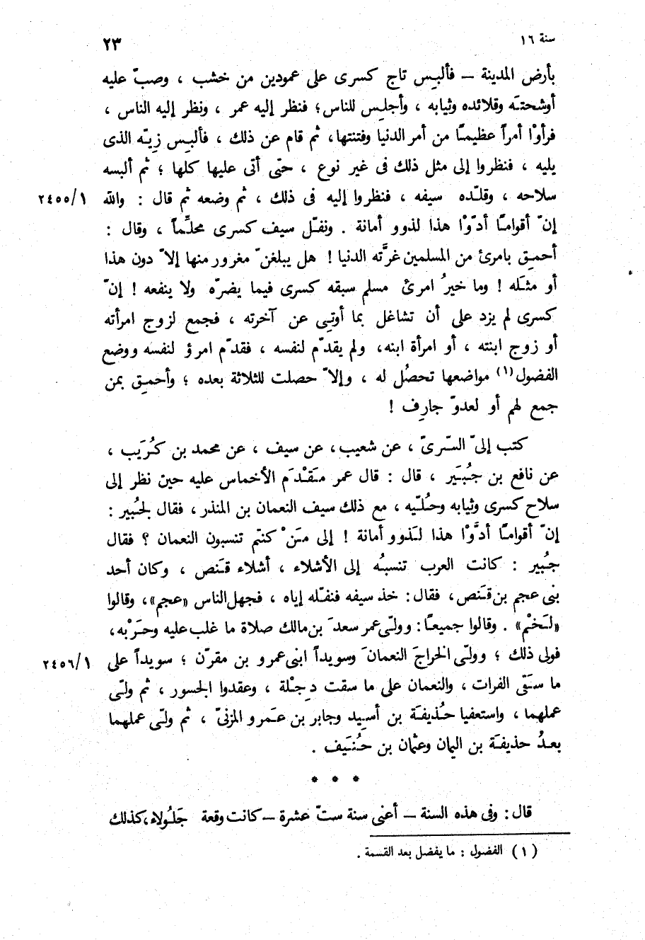 قَالَ: وَفِي هَذِهِ السَّنَةِ- اعنى سنه ست عشره- كَانَتْ وَقْعَةُ جَلُولاءَ، كَذَلِكَ