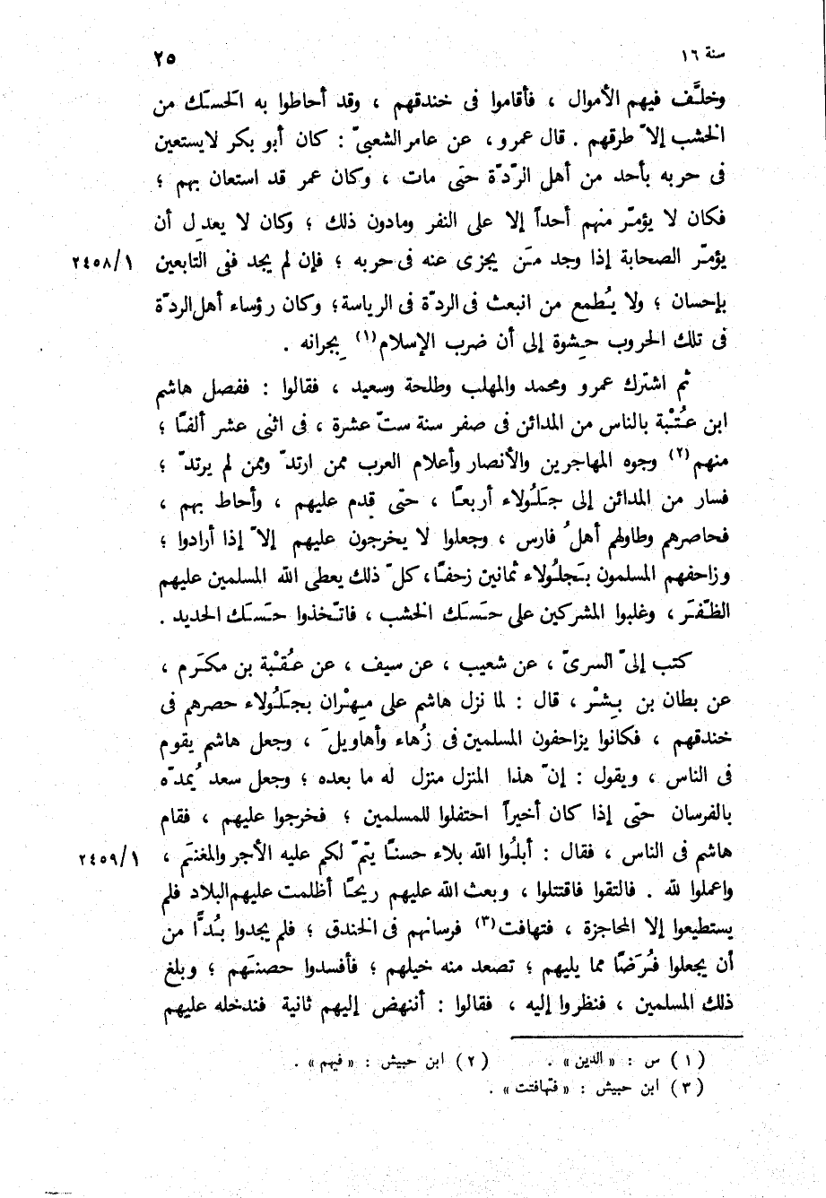 ثُمَّ اشْتَرَكَ عَمْرٌو وَمُحَمَّدٌ وَالْمُهَلَّبُ وَطَلْحَةُ وَسَعِيدٌ، فَقَالُوا: ففصل هاشم ابن عُتْبَةَ بِالنَّاسِ مِنَ الْمَدَائِنِ فِي صَفَرٍ سَنَةَ سِتَّ عَشْرَةَ، فِي اثْنَيْ عَشَرَ أَلْفًا، مِنْهُمْ وُجُوهِ الْمُهَاجِرِينَ وَالأَنْصَارِ وَأَعْلامِ الْعَرَبِ مِمَّنِ ارْتَدَّ وَمِمَّنْ لَمْ يَرْتَدَّ، فَسَارَ مِنَ الْمَدَائِنِ إِلَى جَلُولاءَ أَرْبَعًا، حَتَّى قَدِمَ عَلَيْهِمْ، وَأَحَاطَ بِهِمْ، فَحَاصَرَهُمْ وَطَاوَلَهُمْ أَهْلُ فَارِسَ، وَجَعَلُوا لا يَخْرُجُونَ عَلَيْهِمْ إِلا إِذَا أَرَادُوا، وَزَاحَفَهُمُ الْمُسْلِمُونَ بِجَلُولاءَ ثَمَانِينَ زَحْفًا، كُلُّ ذَلِكَ يُعْطِي اللَّهُ الْمُسْلِمِينَ عَلَيْهِمُ الظَّفْرَ، وَغَلَبُوا الْمُشْرِكِينَ عَلَى حَسَكِ الْخَشَبِ، فَاتَّخَذُوا حَسَكَ الْحَدِيدِ.