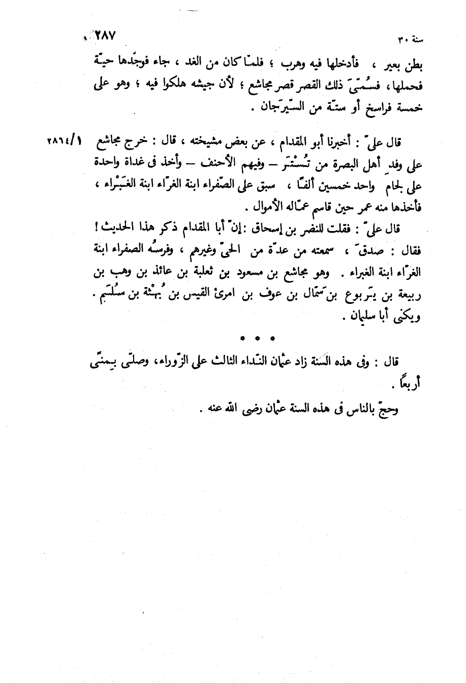 قَالَ علي: فقلت للنضر بن إِسْحَاق: أن أبا المقدام ذكر هَذَا الحديث! فَقَالَ: صدق، سمعته من عدة من الحي وغيرهم، وفرسه الصفراء ابنة الغراء ابنة الغبراء وَهُوَ مجاشع بن مسعود بن ثعلبة بن عائذ بن وهب بْن رَبِيعَةَ بْن يربوع بْن سمال بْن عوف بن امرئ القيس بن بهثه بن سلم.