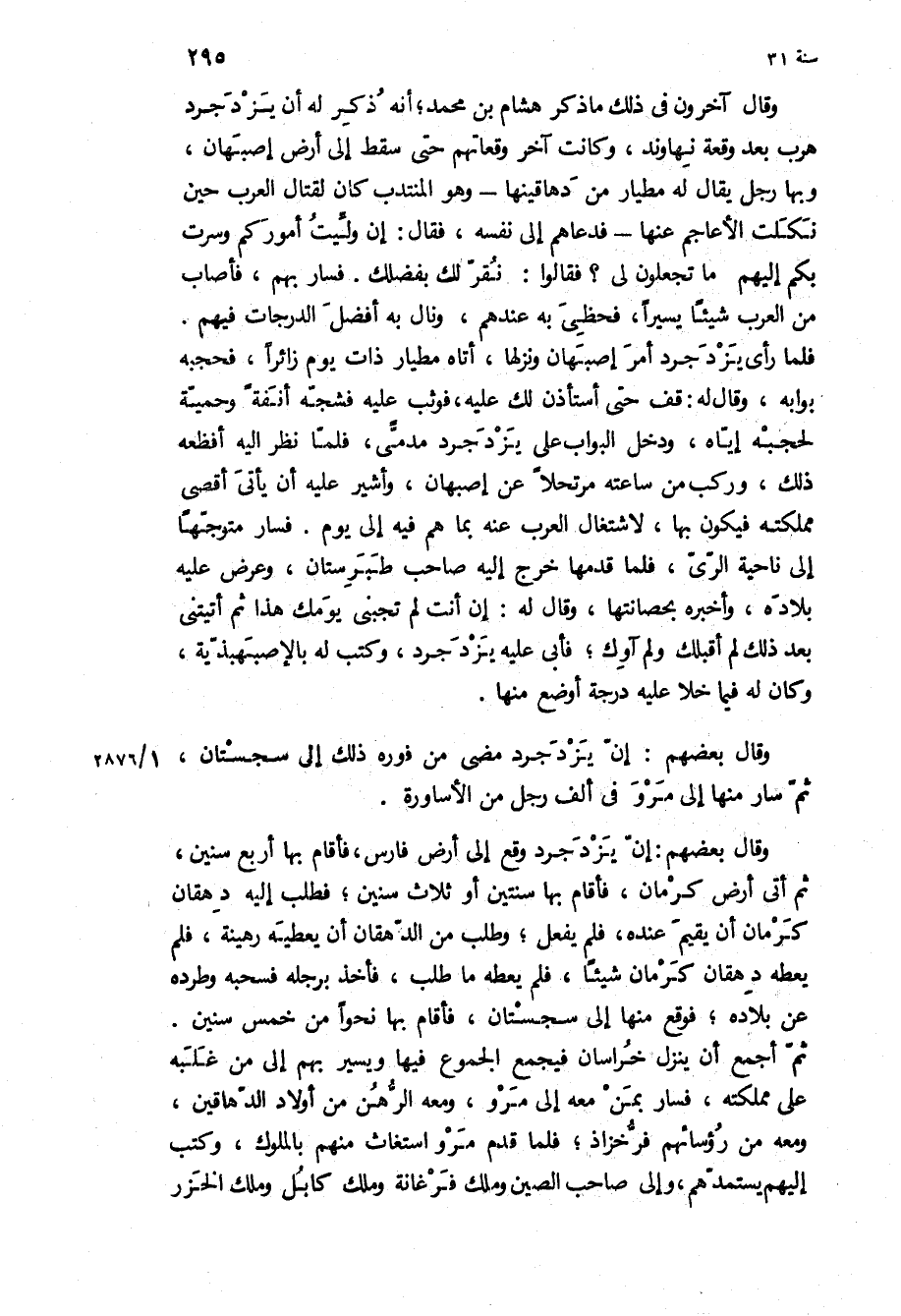 وَقَالَ بعضهم: إن يزدجرد مضى من فوره ذَلِكَ إِلَى سجستان، ثُمَّ سار منها إِلَى مرو فِي ألف رجل من الأساورة.