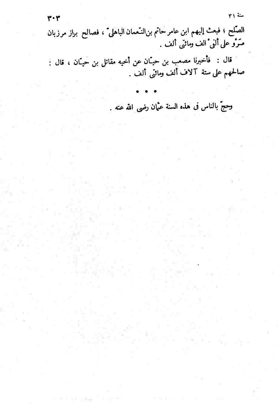 الصلح، فبعث إِلَيْهِم ابن عَامِر حاتم بن النُّعْمَانِ الباهلي، فصالح براز مرزبان مرو عَلَى ألفي ألف ومائتي ألف.