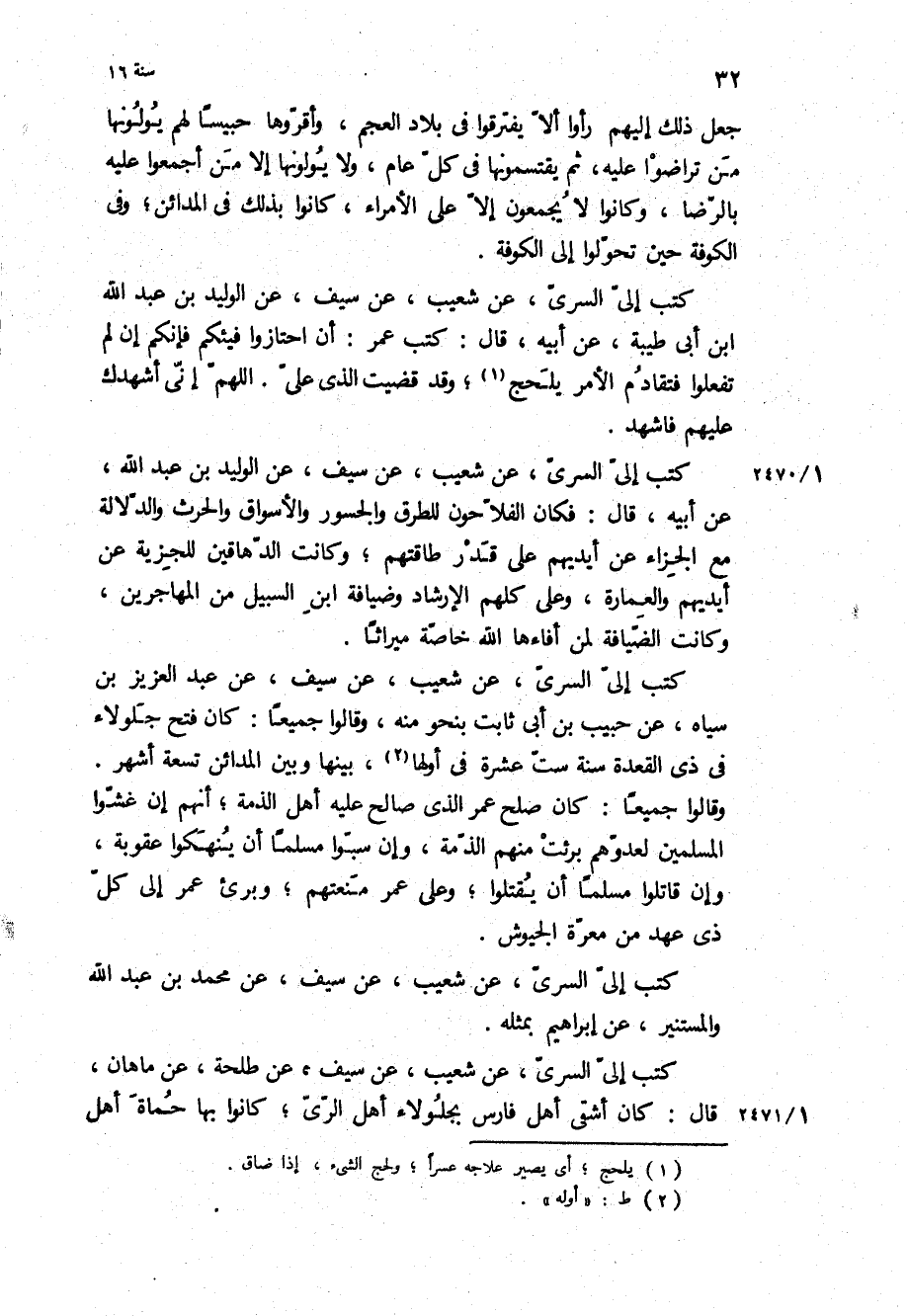كَتَبَ إلي السري، عن شعيب، عن سيف، عن عبد العزيز بن سياه، عن حبيب بن أَبِي ثَابِتٍ بِنَحْوٍ مِنْهُ، وَقَالُوا جَمِيعًا: كَانَ فَتْحُ جَلُولاءَ فِي ذِي الْقَعْدَةِ سَنَةَ سِتَّ عَشْرَةَ فِي أَوَّلِهَا، بَيْنَهَا وَبَيْنَ الْمَدَائِنِ تِسْعَةُ أَشْهُرٍ.