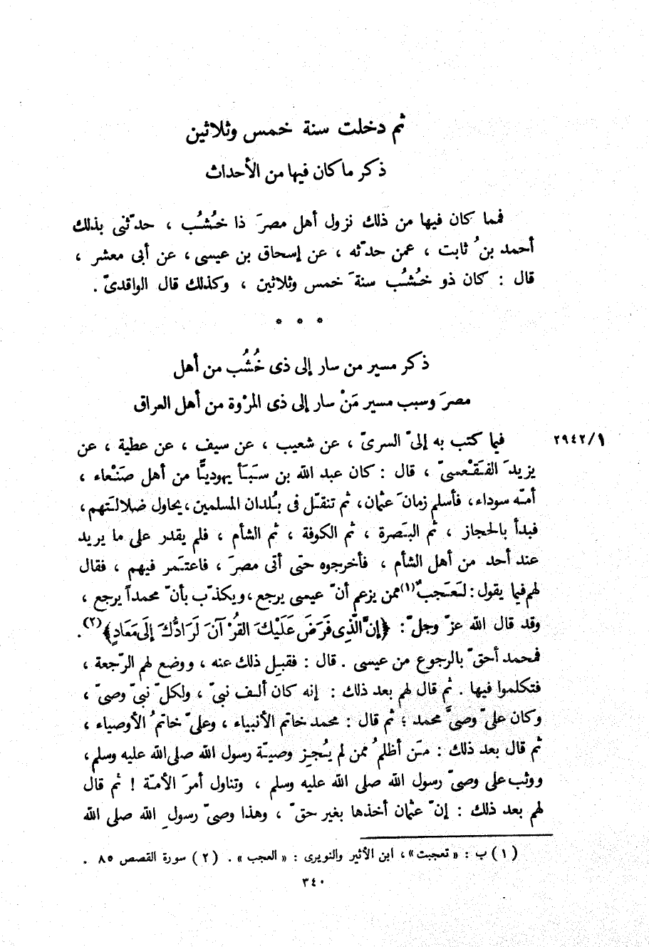 فيما كتب به إلي السري، عن شعيب، عَنْ سَيْفٍ، عَنْ عَطِيَّةَ، عَنْ يَزِيدَ الْفَقْعَسِيِّ، قَالَ: كَانَ عَبْد اللَّهِ بن سبأ يهوديا من أهل صنعاء، أمه سوداء، فأسلم زمان عُثْمَان، ثُمَّ تنقل فِي بلدان الْمُسْلِمِينَ، يحاول ضلالتهم، فبدأ بالحجاز، ثُمَّ الْبَصْرَةِ، ثُمَّ الْكُوفَة، ثُمَّ الشام، فلم يقدر عَلَى مَا يريد عِنْدَ أحد من أهل الشام، فأخرجوه حَتَّى أتى مصر، فاعتمر فِيهِمْ، فَقَالَ لَهُمْ فِيمَا يقول: لعجب ممن يزعم أن عِيسَى يرجع، ويكذب بأن محمدا يرجع، وَقَدْ قَالَ اللَّه عز وجل: «إِنَّ الَّذِي فَرَضَ عَلَيْكَ الْقُرْآنَ لَرادُّكَ إِلى مَعادٍ» .