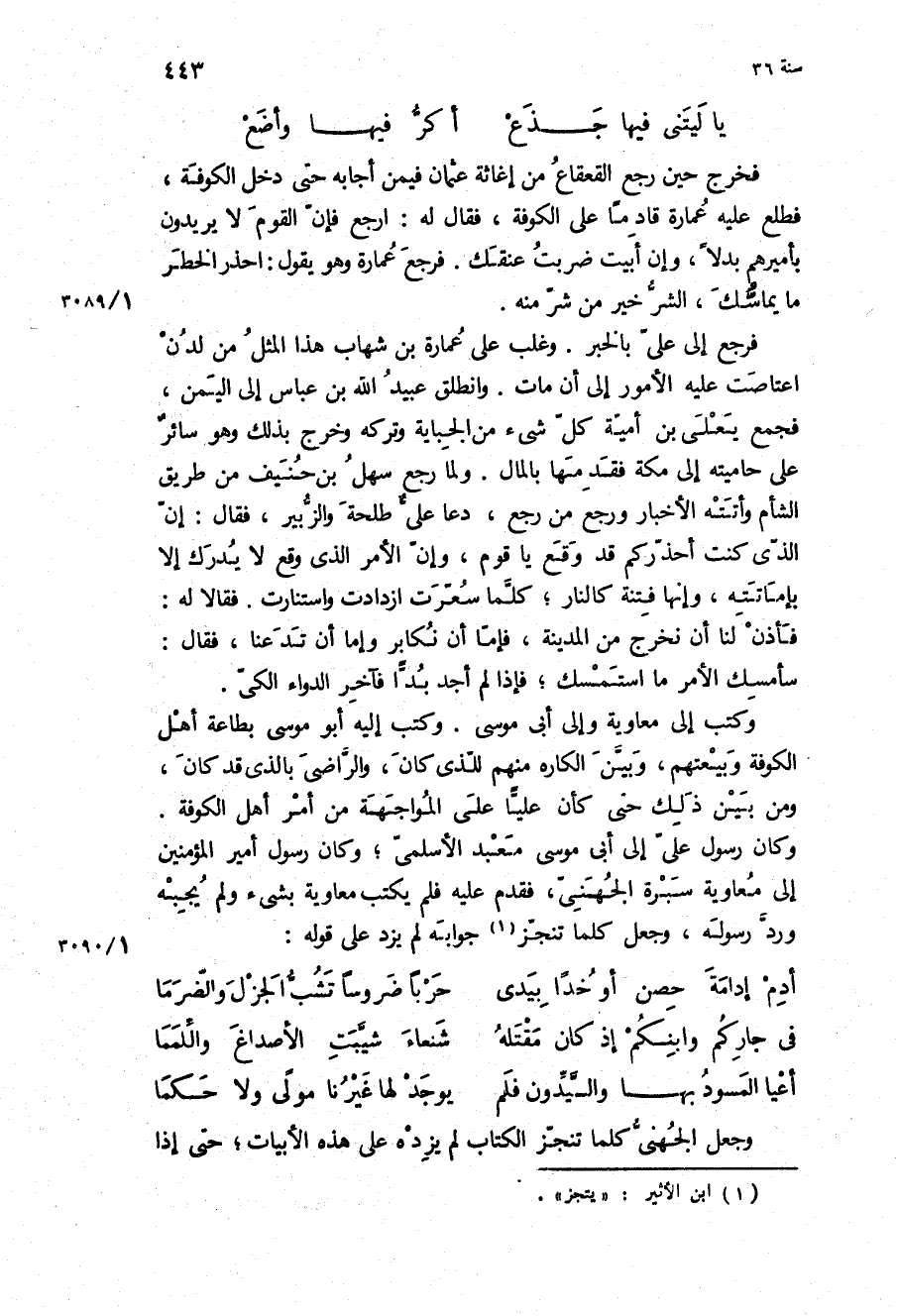 فَرَجَعَ إِلَى عَلِيٍّ بِالْخَبَرِ وَغَلَبَ عَلَى عُمَارَةَ بْنِ شِهَابٍ هَذَا الْمَثَلُ مِنْ لَدُنِ اعْتَاصَتْ عَلَيْهِ الأُمُورُ إِلَى أَنْ مَاتَ وَانْطَلَقَ عُبَيْدُ اللَّهِ بْنُ عَبَّاسٍ إِلَى الْيَمَنِ، فَجَمَعَ يَعْلَى بْنُ أُمَيَّةَ كُلَّ شَيْءٍ مِنَ الْجِبَايَةِ وَتَرَكَهُ وَخَرَجَ بِذَلِكَ وَهُوَ سَائِرٌ عَلَى حَامِيَتِهِ إِلَى مَكَّةَ فَقَدِمَهَا بِالْمَالِ وَلَمَّا رَجَعَ سَهْلُ بْنُ حُنَيْفٍ مِنْ طَرِيقِ الشَّامِ وَأَتَتْهُ الأَخْبَارُ وَرَجَعَ مَنْ رَجَعَ، دَعَا عَلِيٌّ طَلْحَةَ وَالزُّبَيْرَ، فَقَالَ: إِنَّ الَّذِي كُنْتُ أُحَذِّرُكُمْ قَدْ وَقَعَ يَا قَوْمُ، وَإِنَّ الأَمْرَ الَّذِي وَقَعَ لا يُدْرَكُ إِلا بِإِمَاتَتِهِ، وَإِنَّهَا فِتْنَةٌ كَالنَّارِ، كُلَّمَا سُعِرَتِ ازْدَادَتْ وَاسْتَنَارَتْ فَقَالا لَهُ: