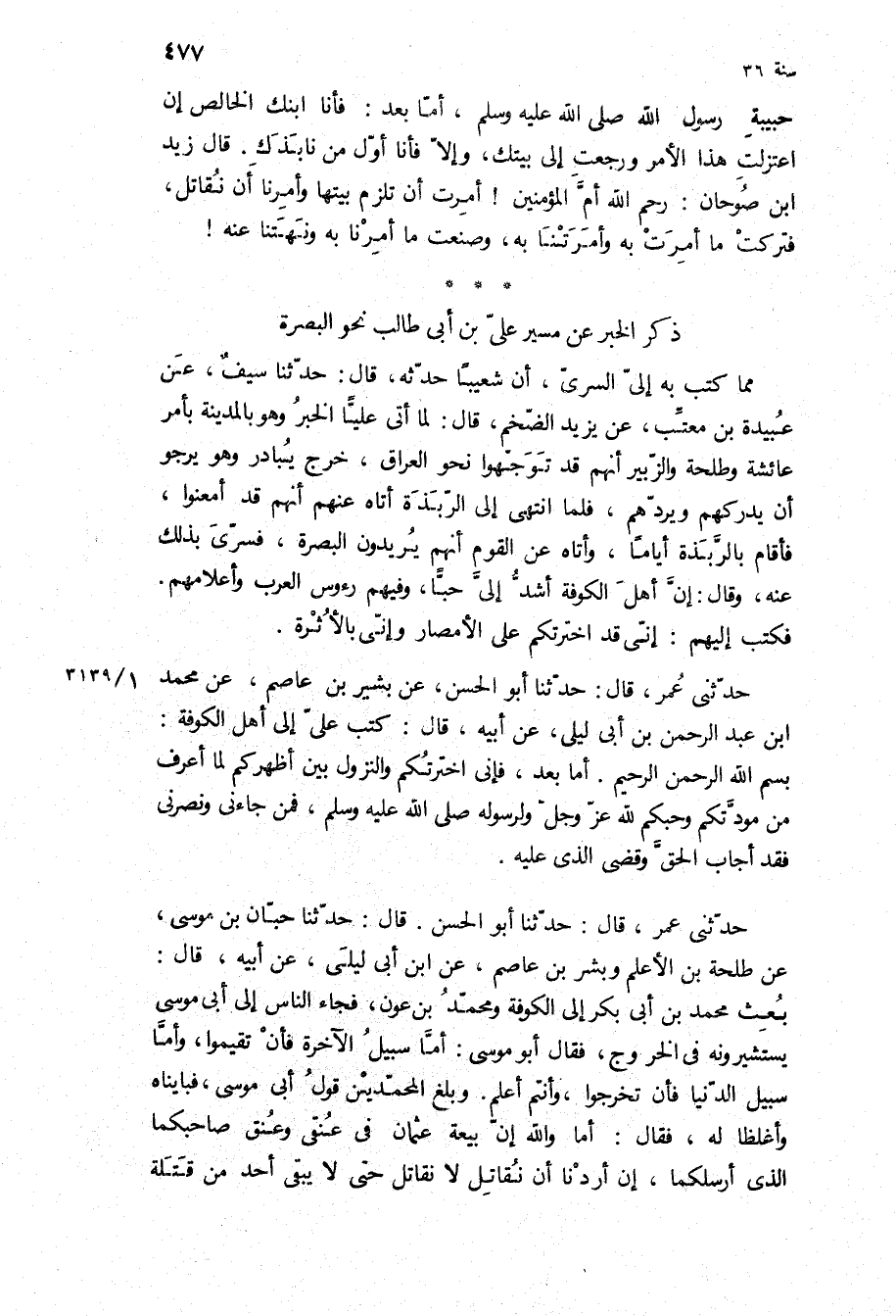 ذِكْرُ الْخَبَرِ عَنْ مَسِيرِ عَلِيِّ بْنِ أَبِي طَالِبٍ نَحْوَ الْبَصْرَةِ