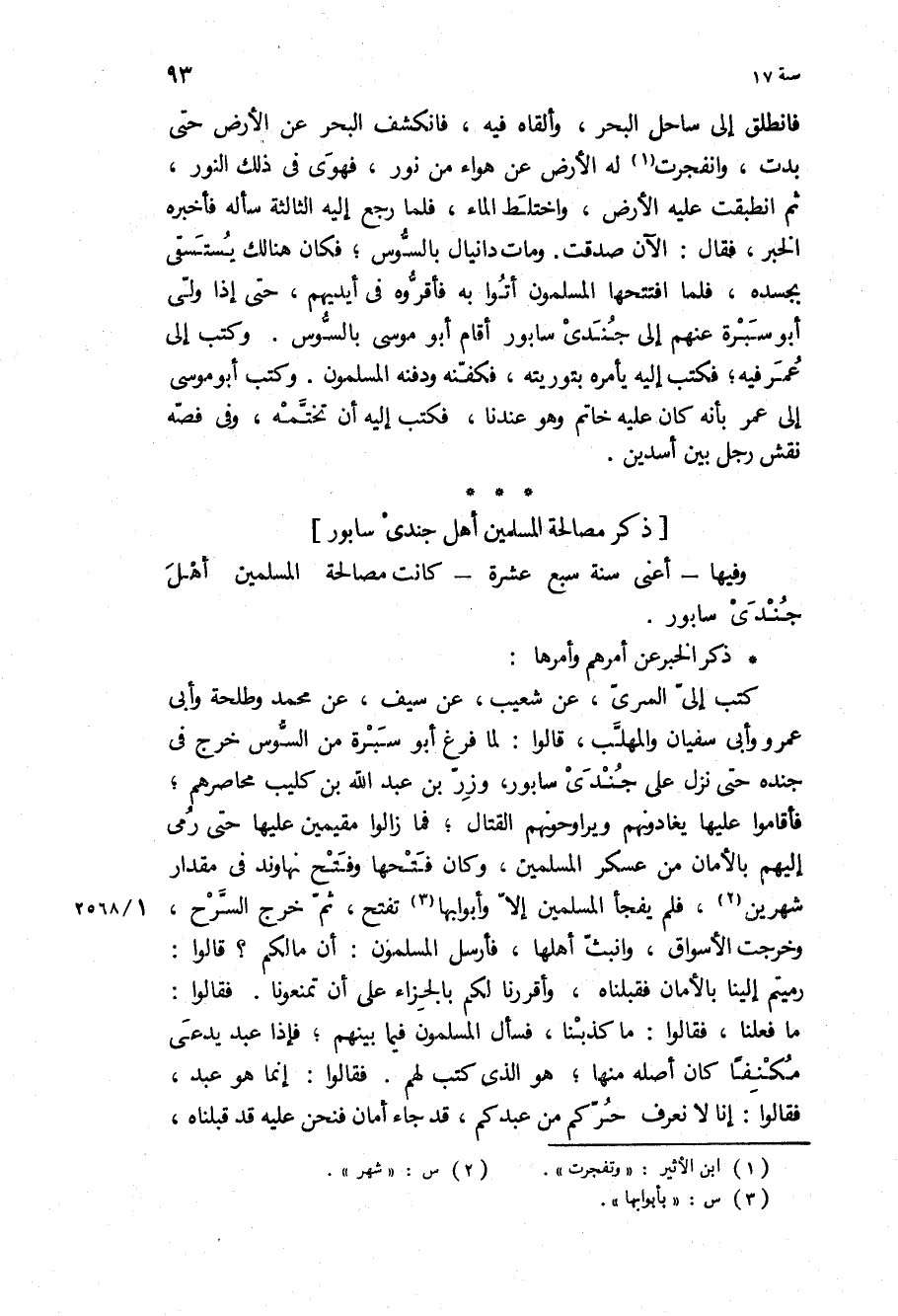 وفيها- أعني سنة سبع عشرة- كانت مصالحة المسلمين اهل جندى سابور.