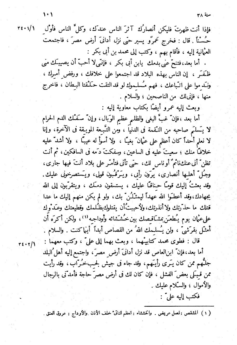 وبعث إِلَيْهِ عَمْرو أَيْضًا بكتاب مُعَاوِيَة إِلَيْهِ: