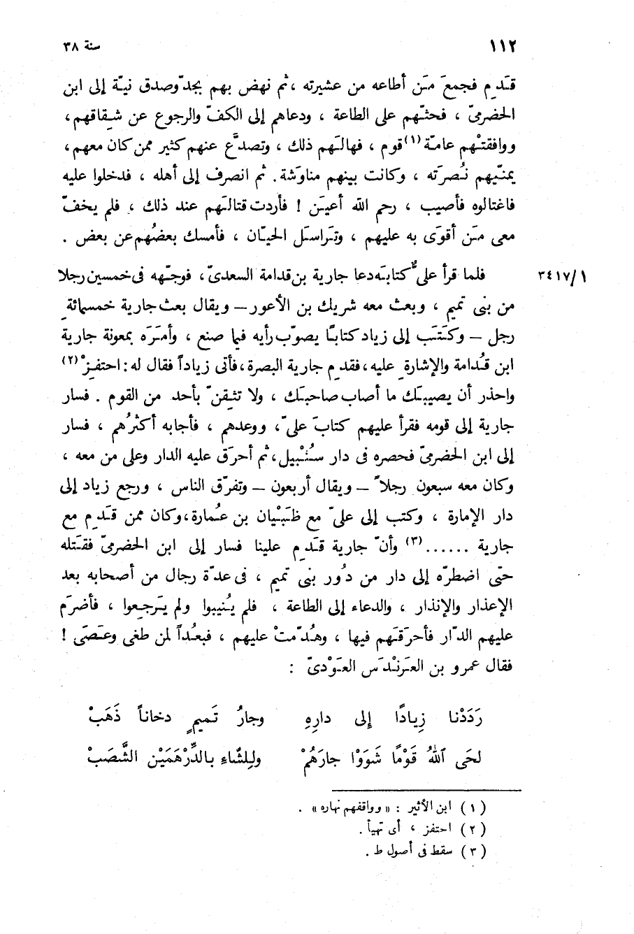 رددنا زيادا إِلَى داره ... وجار تميم دخانا ذهب