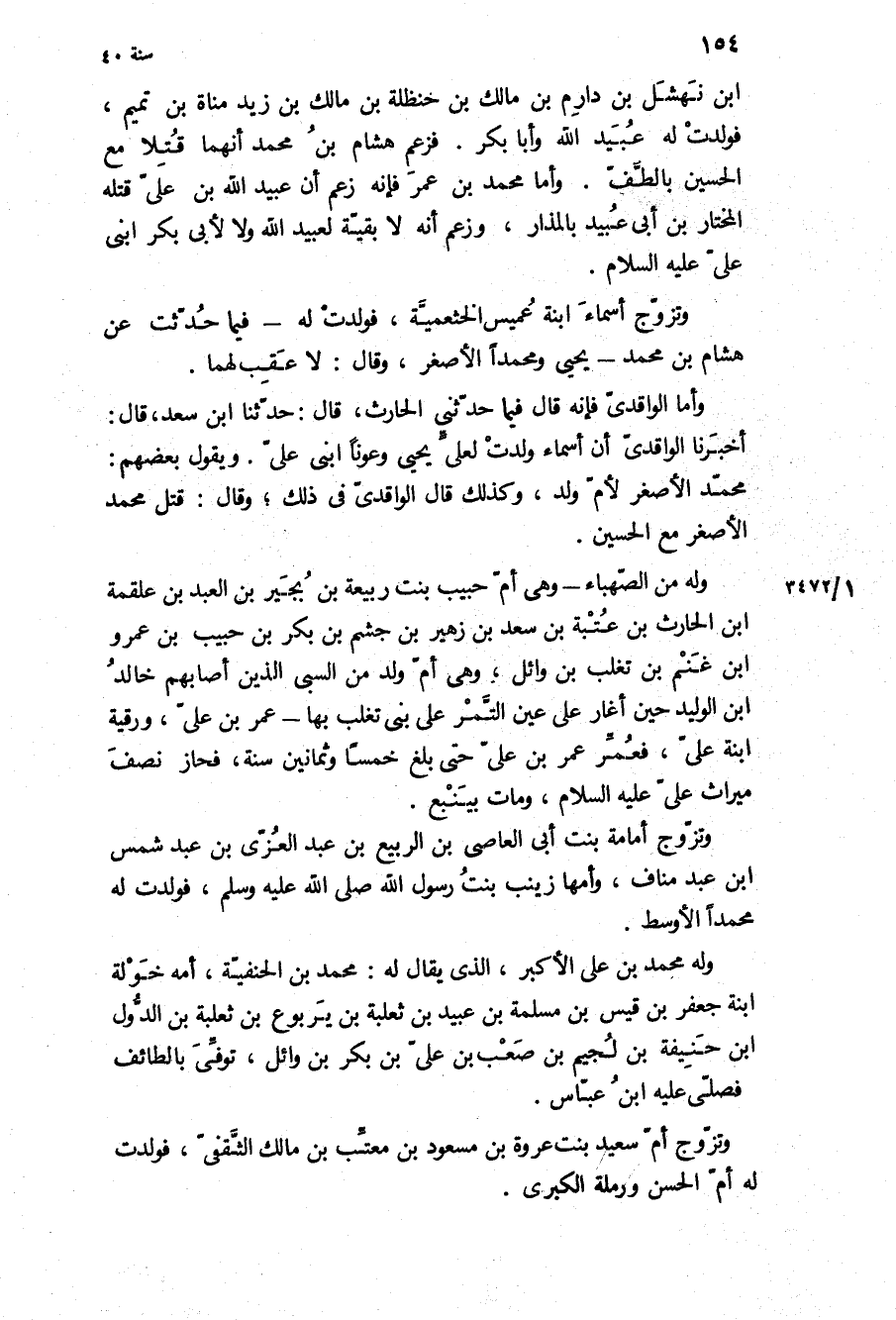 محمد الاصغر لام ولد، وكذلك قَالَ الْوَاقِدِيّ فِي ذَلِكَ، وَقَالَ: قتل مُحَمَّد الأصغر مع الْحُسَيْن.