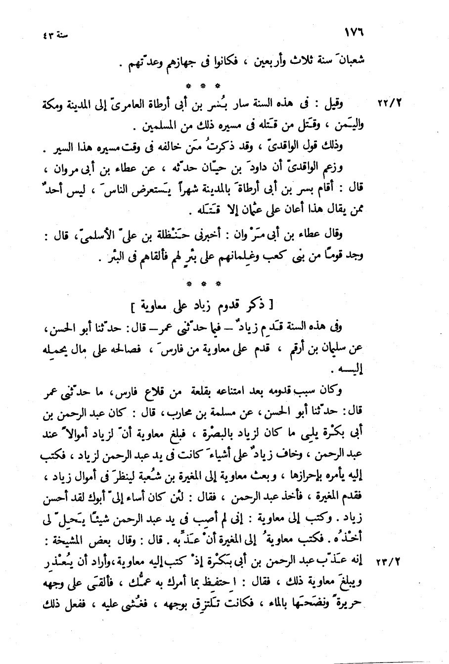 شعبان سنة ثلاث وأربعين، فكانوا فِي جهازهم وعدتهم.