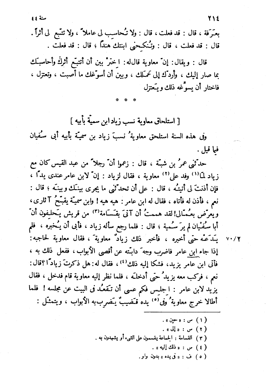 وَفِي هَذِهِ السَّنَةِ اسْتَلْحَقَ مُعَاوِيَةُ نَسَبَ زِيَادِ بن سُمَيَّةَ بِأَبِيهِ أَبِي سُفْيَانَ فِيمَا قِيلَ.