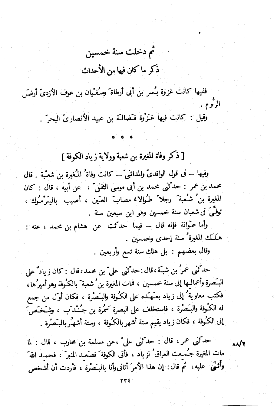 (ذكر مَا كَانَ فِيهَا من الأحداث) ففيها كَانَتْ غزوة بسر بن أبي أرطاة وسفيان بن عوف الأَزْدِيّ أرض الروم.