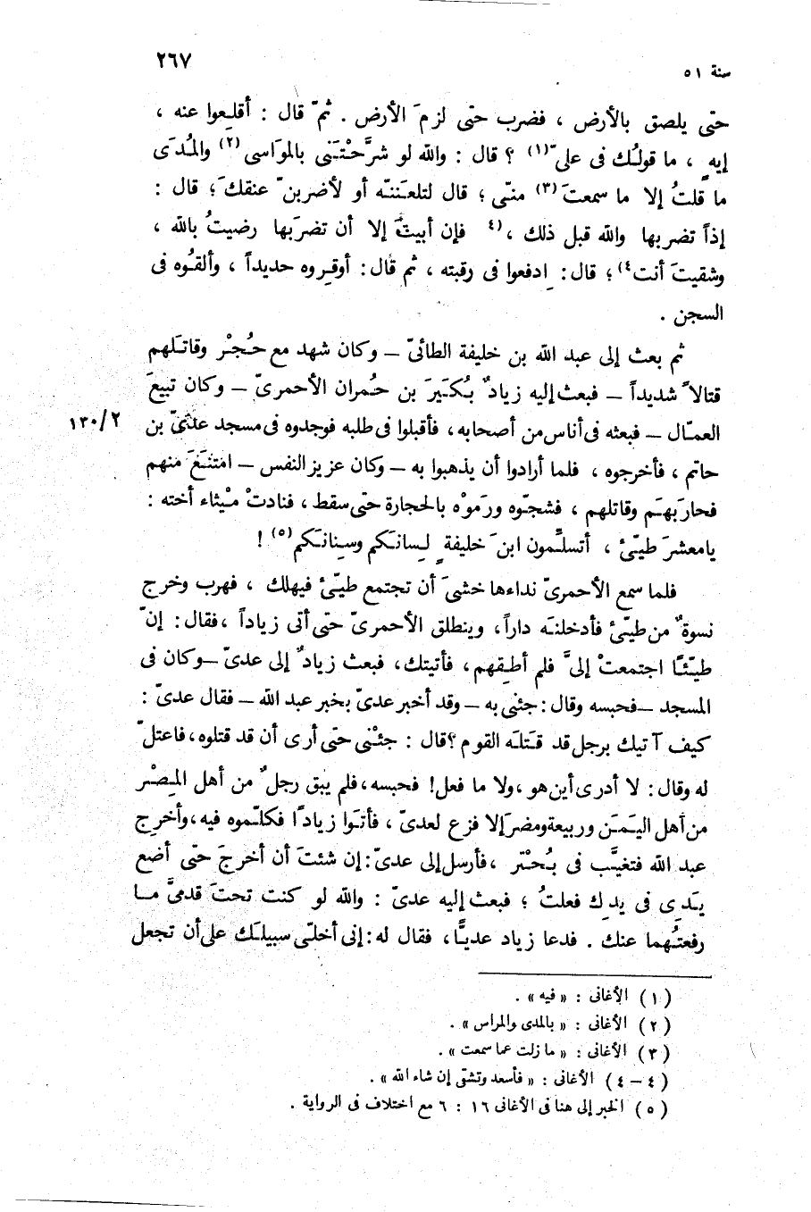 يَا معشر طيئ، أتسلمون ابن خليفة لسانكم وسنانكم! فلما سمع الأحمري نداءها خشي أن تجتمع طيئ فيهلك، فهرب وخرج نسوة من طيئ فأدخلنه دارا، وينطلق الأحمري حَتَّى أتى زيادا فَقَالَ: إن طيئا اجتمعت إلي فلم أطقهم، فأتيتك، فبعث زياد إِلَى عدي- وَكَانَ فِي المسجد- فحبسه وَقَالَ: جئني بِهِ- وَقَدْ أخبر عدي بخبر عَبْد اللَّهِ- فَقَالَ عدي: