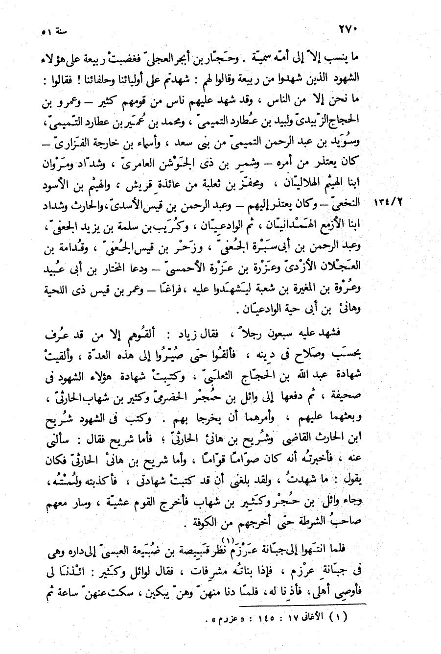 مَا نحن إلا مِنَ النَّاسِ، وَقَدْ شهد عَلَيْهِم ناس من قومهم كثير- وعمرو بن الحجاج الزبيدي ولبيد بن عطارد التميمي، ومُحَمَّد بن عمير بن عطارد التميمي، وسويد بن عَبْدِ الرَّحْمَنِ التميمي من بني سعد، وأسماء بن خارجة الفزاري- كَانَ يعتذر من أمره- وشمر بن ذي الجوشن العامري، وشداد ومروان ابنا الهيثم الهلاليان، ومحفز بن ثعلبة من عائذة قريش، والهيثم بن الأَسْوَدِ النخعي- وَكَانَ يعتذر إِلَيْهِم- وعبد الرَّحْمَن بن قيس الأسدي، والحارث وشداد ابنا الأزمع الهمدانيان، ثُمَّ الوادعيان، وكريب بن سلمة بن يَزِيدَ الجعفي، وعبد الرَّحْمَن بن أبي سبرة الجعفي، وزحر بن قيس الجعفي، وقدامة بن العجلان الأَزْدِيّ وعزرة بن عزرة الأحمسي- ودعا المختار بن أبي عبيد وعروة بن الْمُغِيرَة بن شُعْبَةَ ليشهدوا عَلَيْهِ، فراغا- وعمر بن قيس ذي اللحية وهانئ بن أبي حية الوادعيان.