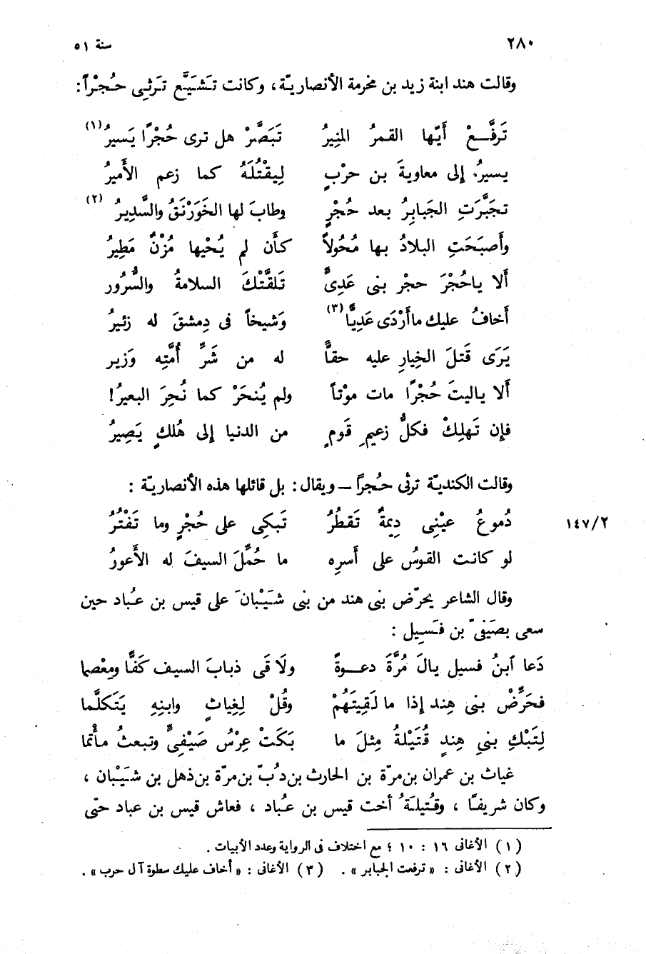 وقالت الكندية ترثي حجرا- ويقال: بل قائلها هَذِهِ الأنصارية: