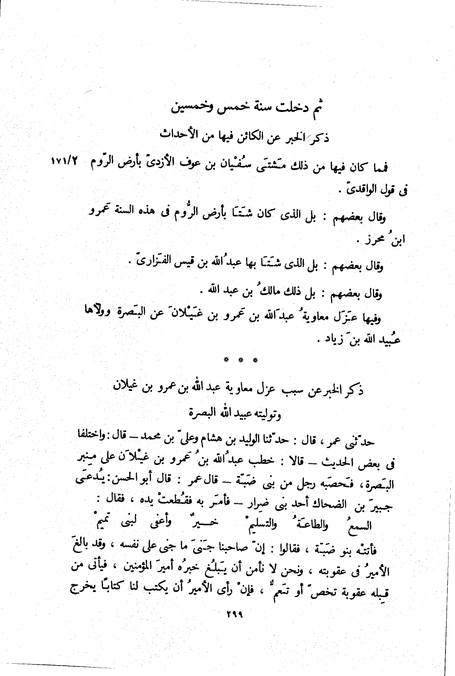 وفيها عزل مُعَاوِيَة عَبْد اللَّهِ بن عَمْرو بن غيلان عن الْبَصْرَة وولاها عُبَيْد اللَّهِ بن زياد.