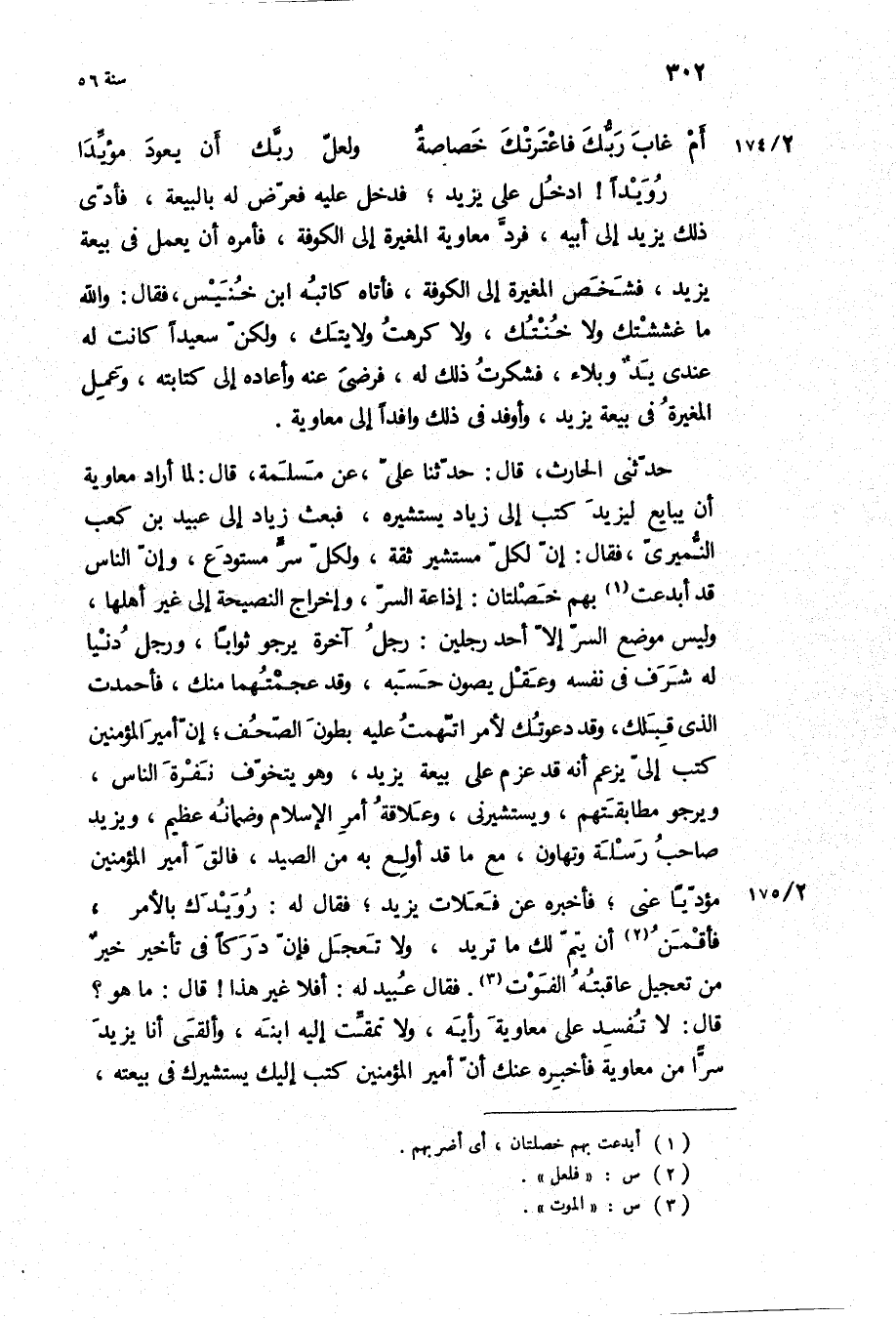 قَالَ: لا تفسد عَلَى مُعَاوِيَة رأيه، وَلا تمقت إِلَيْهِ ابنه، وألقى أنا يَزِيد سرا من مُعَاوِيَة فأخبره عنك أن أَمِير الْمُؤْمِنِينَ كتب إليك يستشيرك فِي بيعته،
