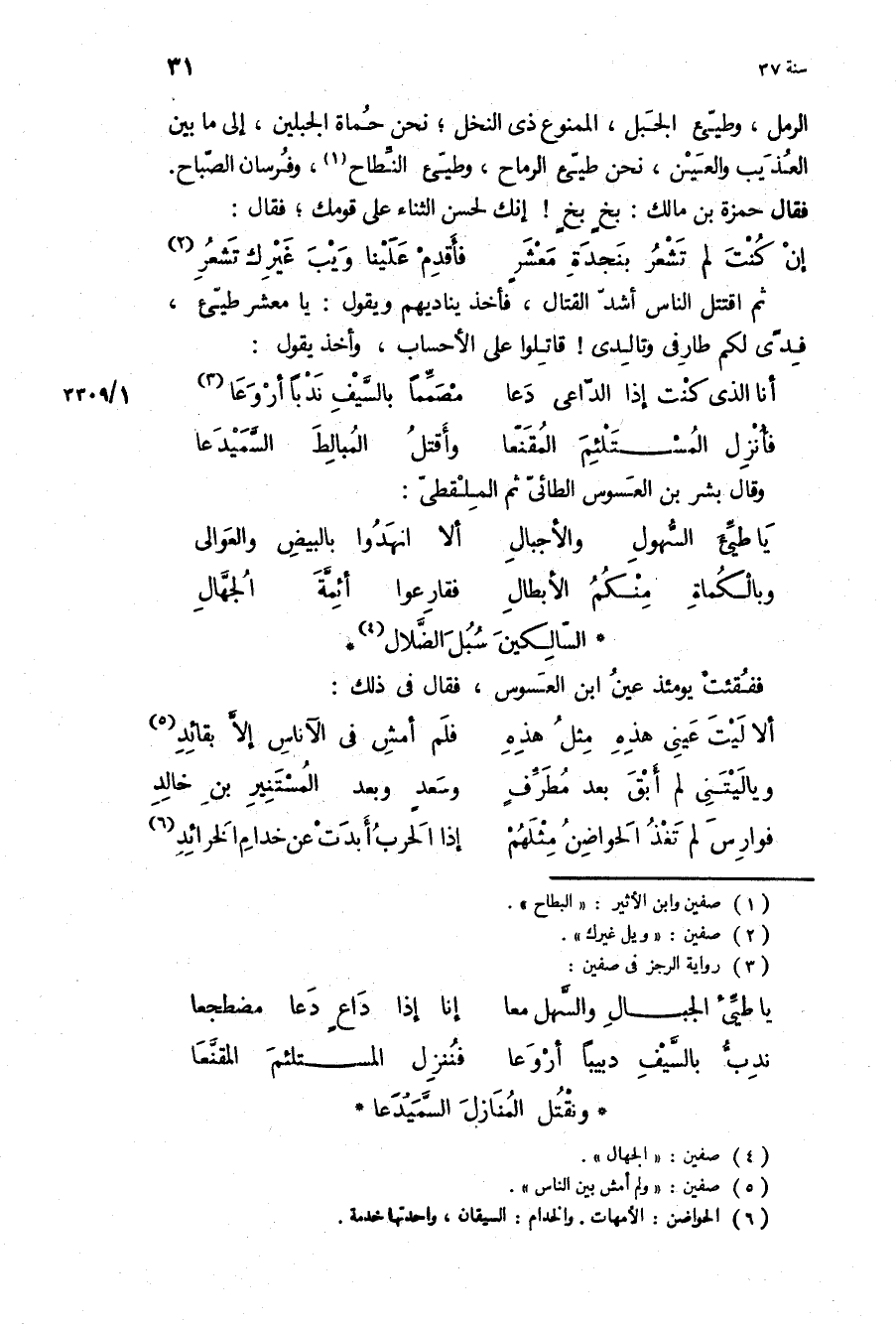 يَا طيئ السهول والأجبال ... أَلا انهدوا بالبيض والعوالي