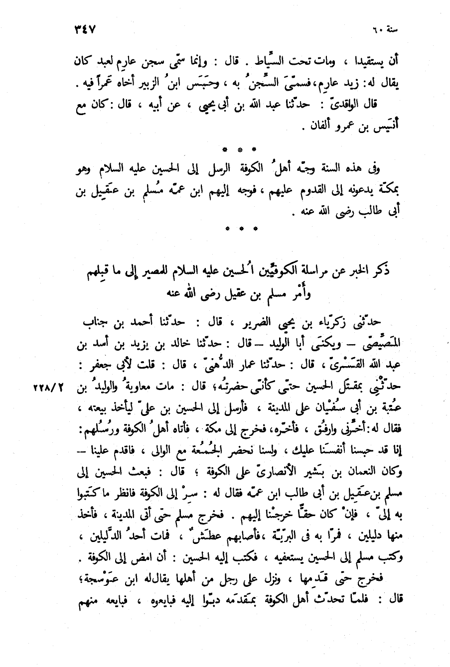 وفي هَذِهِ السنة وجه أهل الْكُوفَة الرسل إِلَى الحسين ع وَهُوَ بمكة يدعونه إِلَى القدوم عَلَيْهِم، فوجه إِلَيْهِم ابن عمه مسلم بن عقيل بن أبي طالب رَضِيَ اللَّهُ عَنْهُ