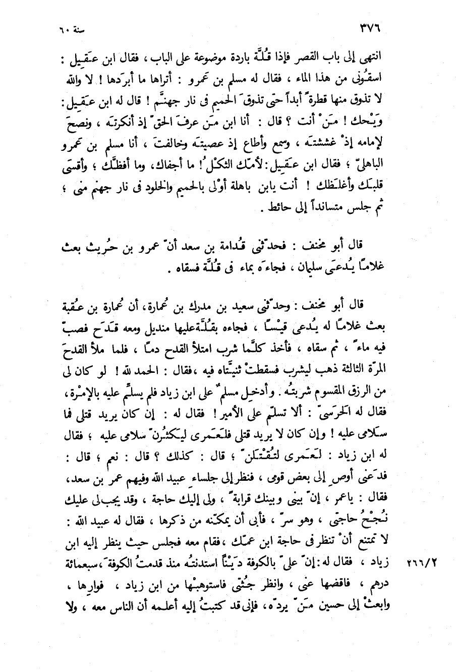 قَالَ أَبُو مخنف: فَحَدَّثَنِي قدامة بن سَعْد أن عَمْرو بن حريث بعث غلاما يدعى سُلَيْمَان، فجاءه بماء فِي قلة فسقاه.