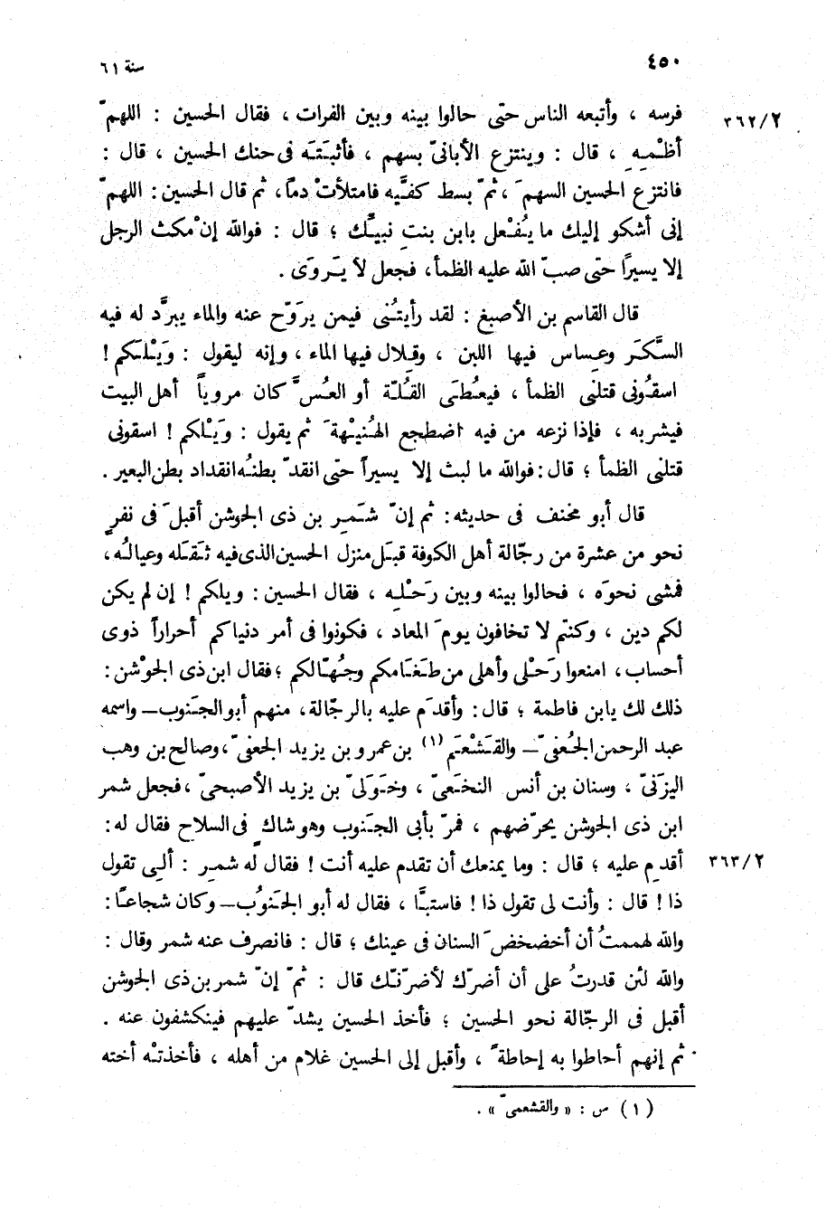 وَاللَّهِ لَئِنْ قدرت عَلَى أن أضرك لأضرنك قَالَ: ثُمَّ إن شمر بن ذي الجوشن أقبل فِي الرجالة نحو الْحُسَيْن، فأخذ الْحُسَيْن يشد عَلَيْهِم فينكشفون عنه.