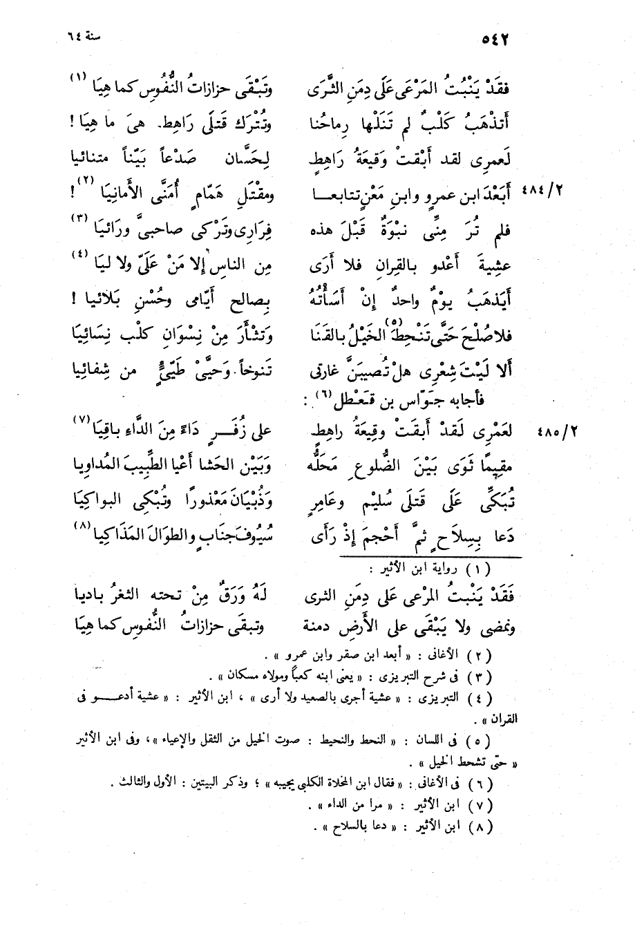 فقد ينبت المرعى عَلَى دمن الثرى ... وتبقى حزازات النفوس كماهيا