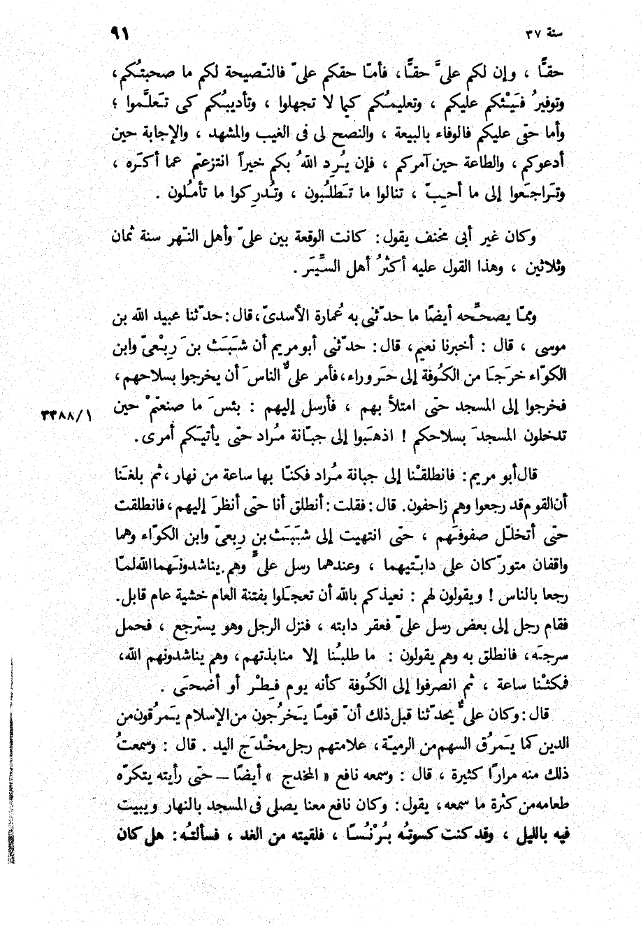 وَكَانَ غير أبي مخنف يقول: كَانَتِ الوقعة بين علي وأهل النهر سنة ثمان وثلاثين، وهذا القول عَلَيْهِ أكثر أهل السير.