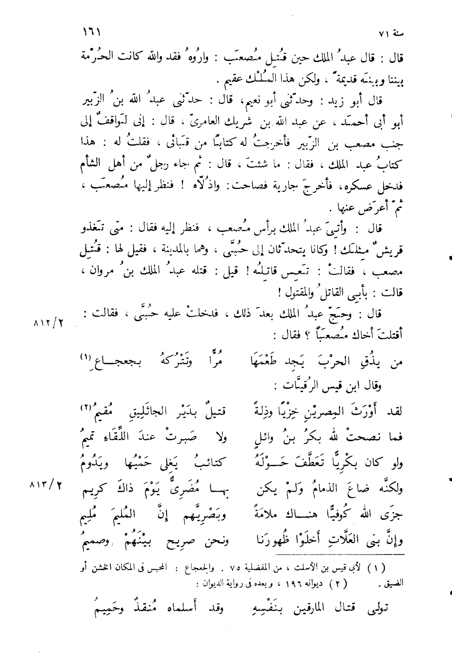 قال: قال عبد الملك حين قتل مصعب: واروه فقد والله كانت الحرمة بيننا وبينه قديمة، ولكن هذا الملك عقيم.