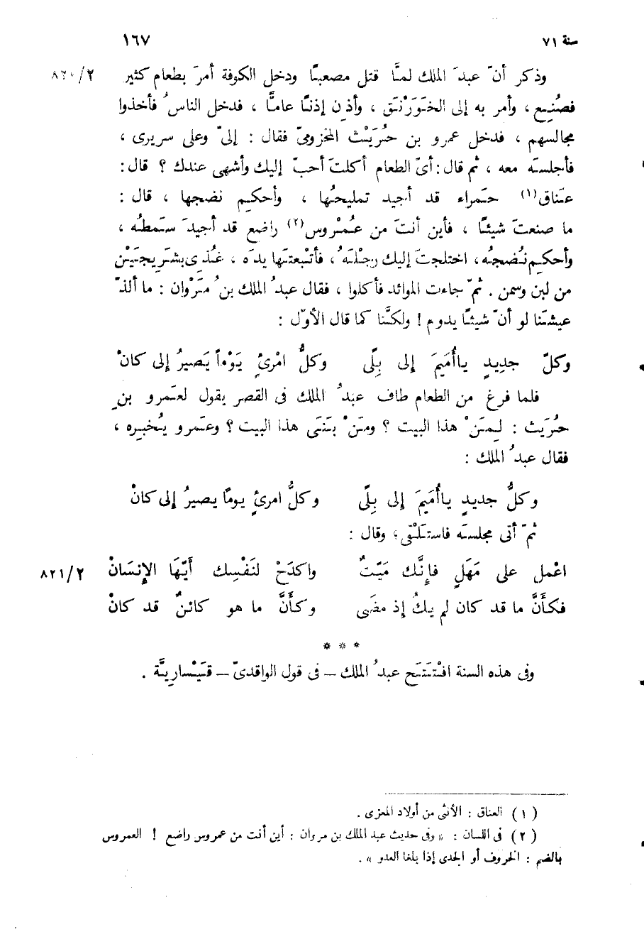 وفي هذه السنة افتتح عبد الملك- في قول الواقدي- قيساريه.