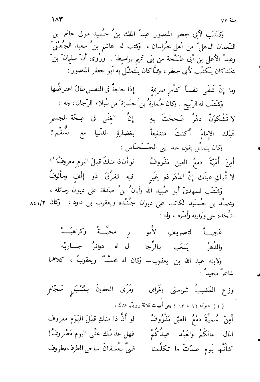 وكتب له الربيع وكان عمارة بن حمزة من نبلاء الرجال، وله: