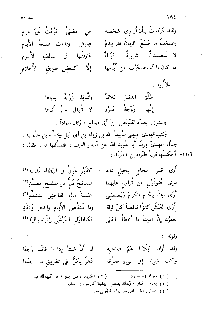 لعمرك إن الموت ما أخطأ الفتى ... لكالطول المرخى وثنياه باليد