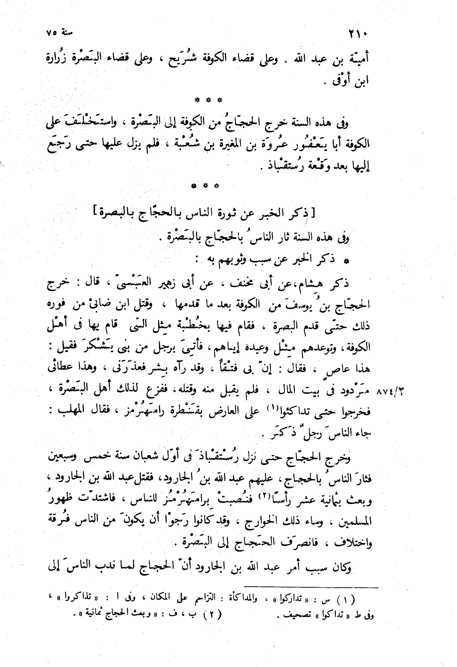 ذكر الخبر عن ثوره الناس بالحجاج بالبصرة