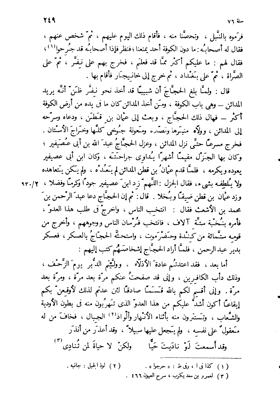 أما بعد، فقد اعتدتم عادة الأذلاء، ووليتم الدبر يوم الزحف، وذلك دأب الكافرين، وإني قد صفحت عنكم مرة بعد مرة، ومرة بعد مرة وإني أقسم لكم بالله قسما صادقا لئن عدتم لذلك لأوقعن بكم إيقاعا أكون أشد عليكم من هذا العدو الذى تهربون منه في بطون الأودية والشعاب، وتستترون منه بأثناء الأنهار وألواذ الجبال، فخاف من له معقول على نفسه، ولم يجعل عليها سبيلا، وقد أعذر من أنذر