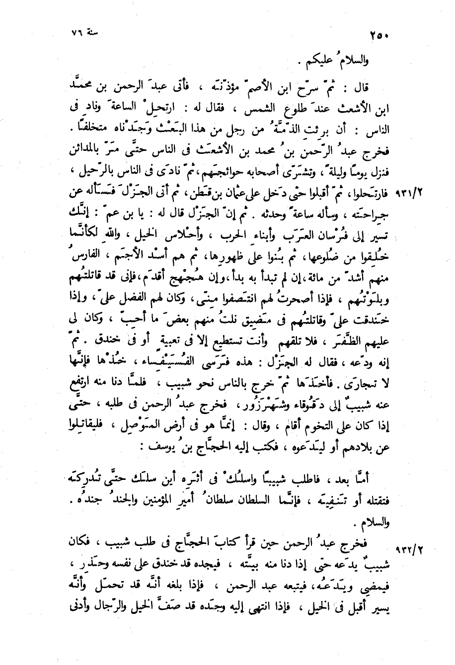 أما بعد، فاطلب شبيبا واسلك في أثره أين سلك حتى تدركه فتقتله أو تنفيه، فإنما السلطان سلطان أمير المؤمنين والجند جنده- والسلام.
