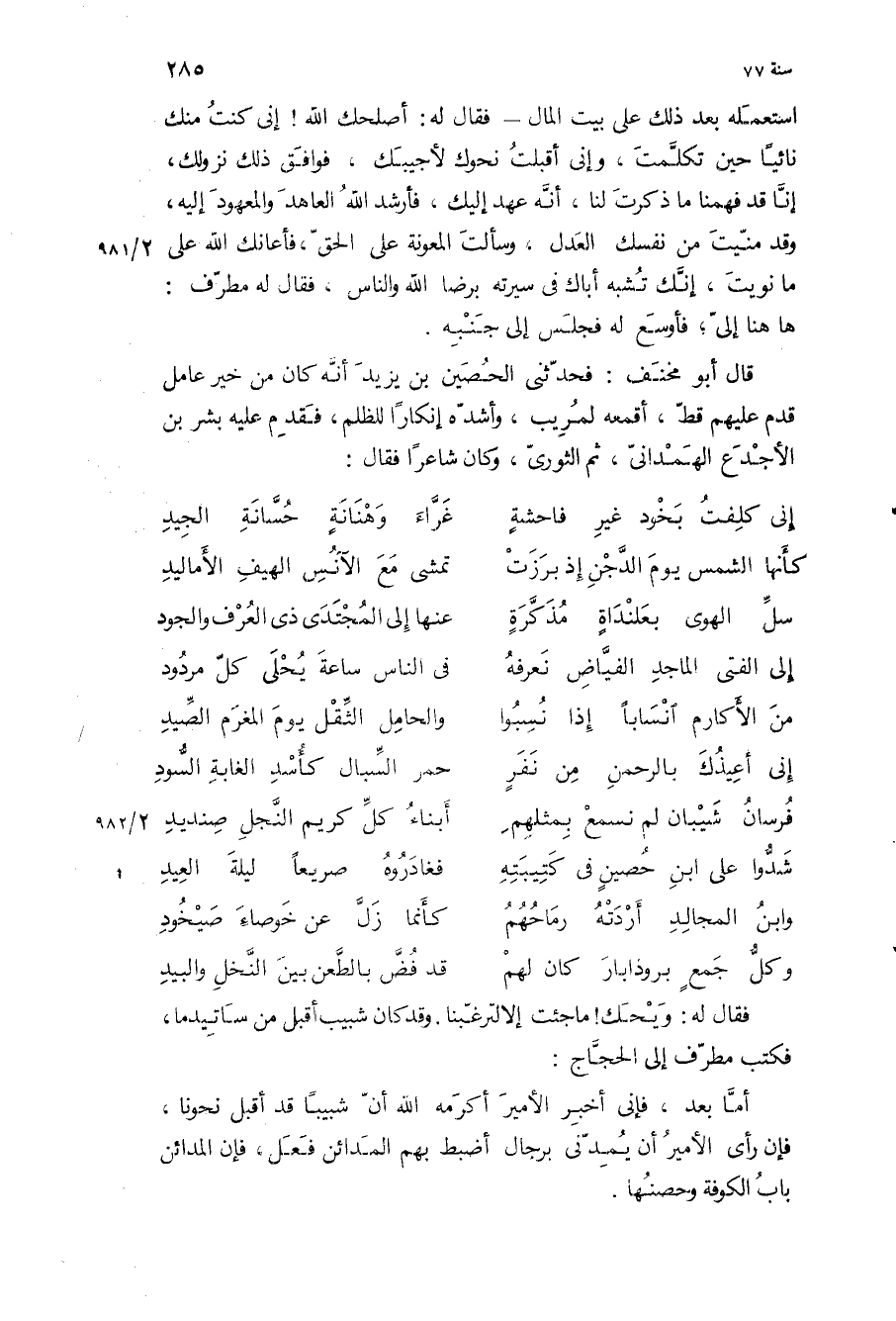 فقال له: ويحك! ما جئت الا لترغبنا وقد كان شبيب أقبل من ساتيدما، فكتب مطرف إلى الحجاج: