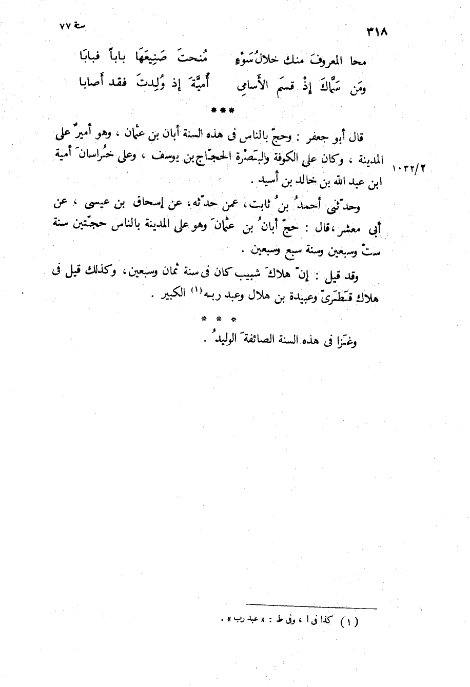 وسنة سبع وسبعين وقد قيل: إن هلاك شبيب كان في سنة ثمان وسبعين، وكذلك قيل في هلاك قطري وعبيدة بن هلال وعبد ربه الكبير.