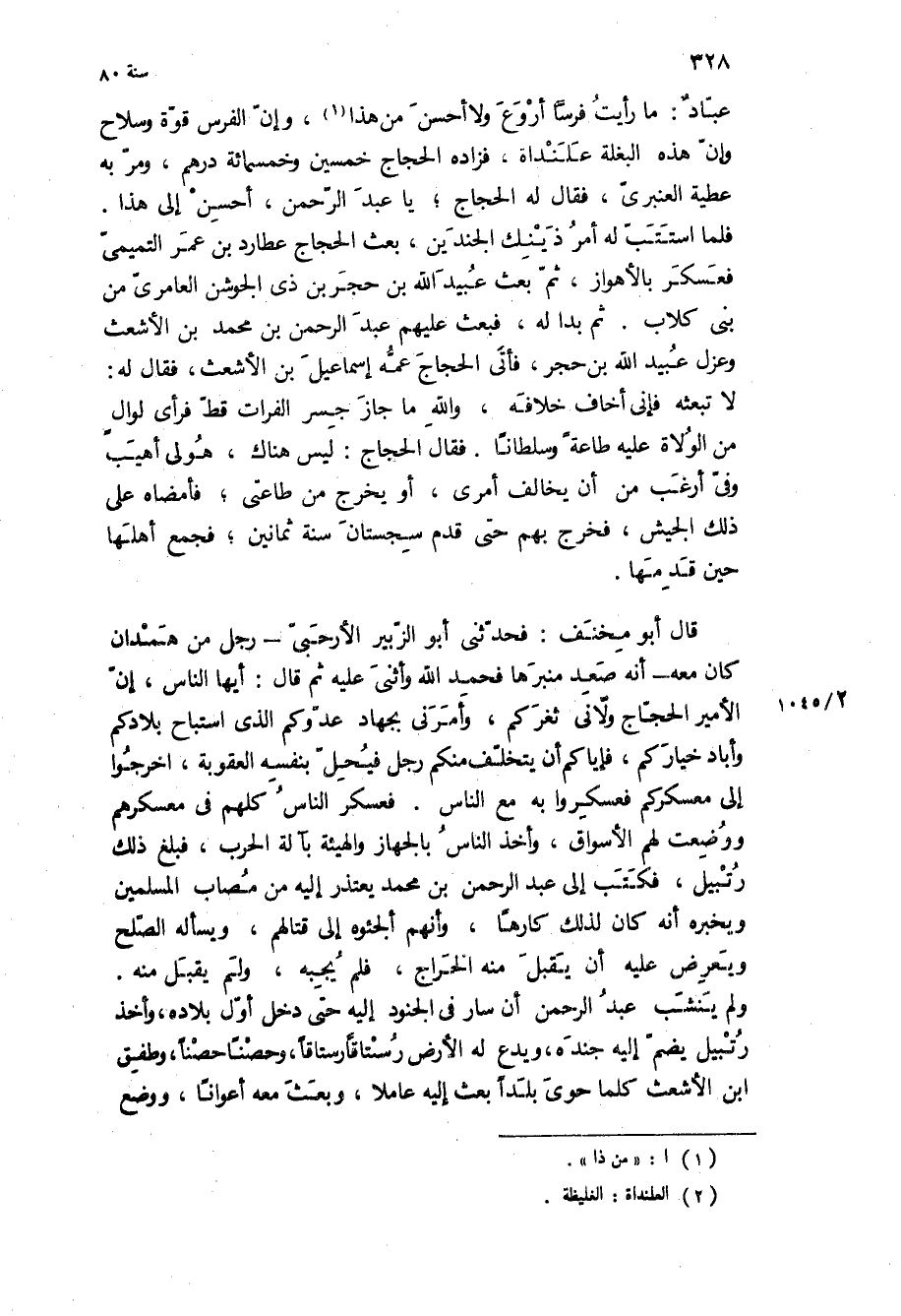 لا تبعثه فإني أخاف خلافه، والله ما جاز جسر الفرات قط فرأى لوال من الولاة عليه طاعة وسلطانا فقال الحجاج: ليس هناك، هو لي أهيب وفي أرغب من أن يخالف أمري، أو يخرج من طاعتي، فأمضاه على ذلك الجيش، فخرج بهم حتى قدم سجستان سنة ثمانين، فجمع أهلها حين قدمها.