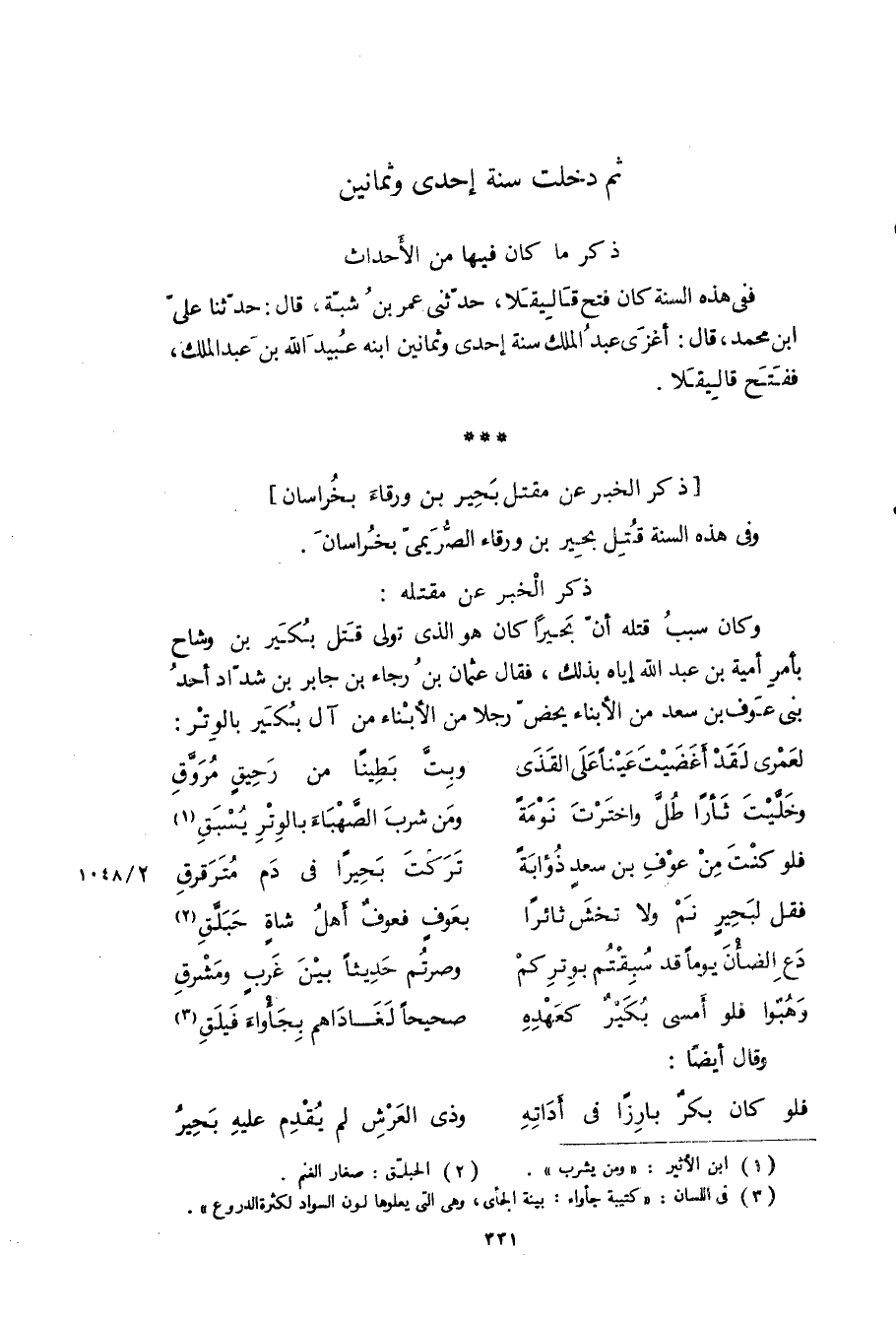 وفي هذه السنة قتل بحير بن ورقاء الصريمي بخراسان.