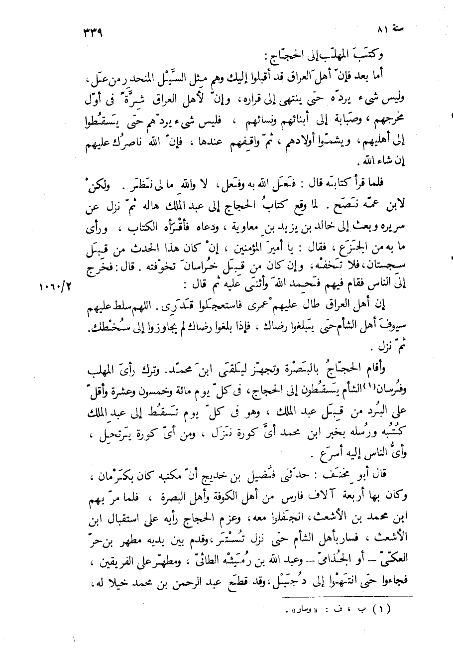 وكتب المهلب إلى الحجاج: