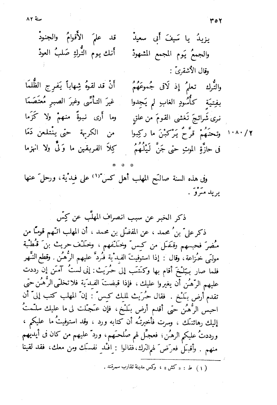وفي هذه السنه صالح المهلب اهل كس على فدية، ورحل عنها يريد مرو
