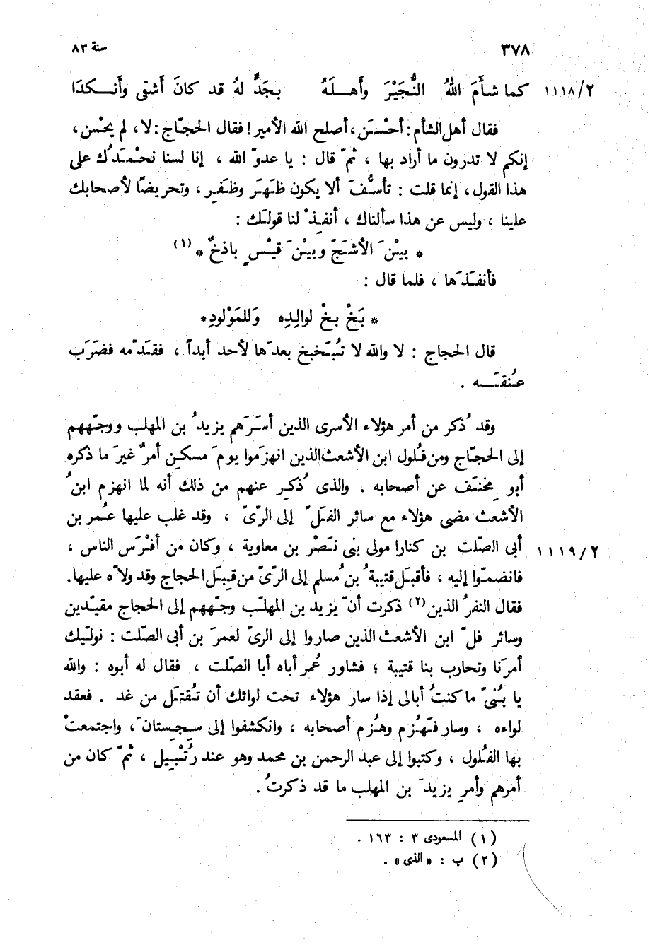 فقال أهل الشام: أحسن، أصلح الله الأمير! فقال الحجاج: لا، لم يحسن، إنكم لا تدرون ما أراد بها، ثم قال: يا عدو الله، إنا لسنا نحمدك على هذا القول، إنما قلت: تأسف الا يكون ظهر وظفر، وتحريضا لأصحابك علينا، وليس عن هذا سألناك، أنفذ لنا قولك: