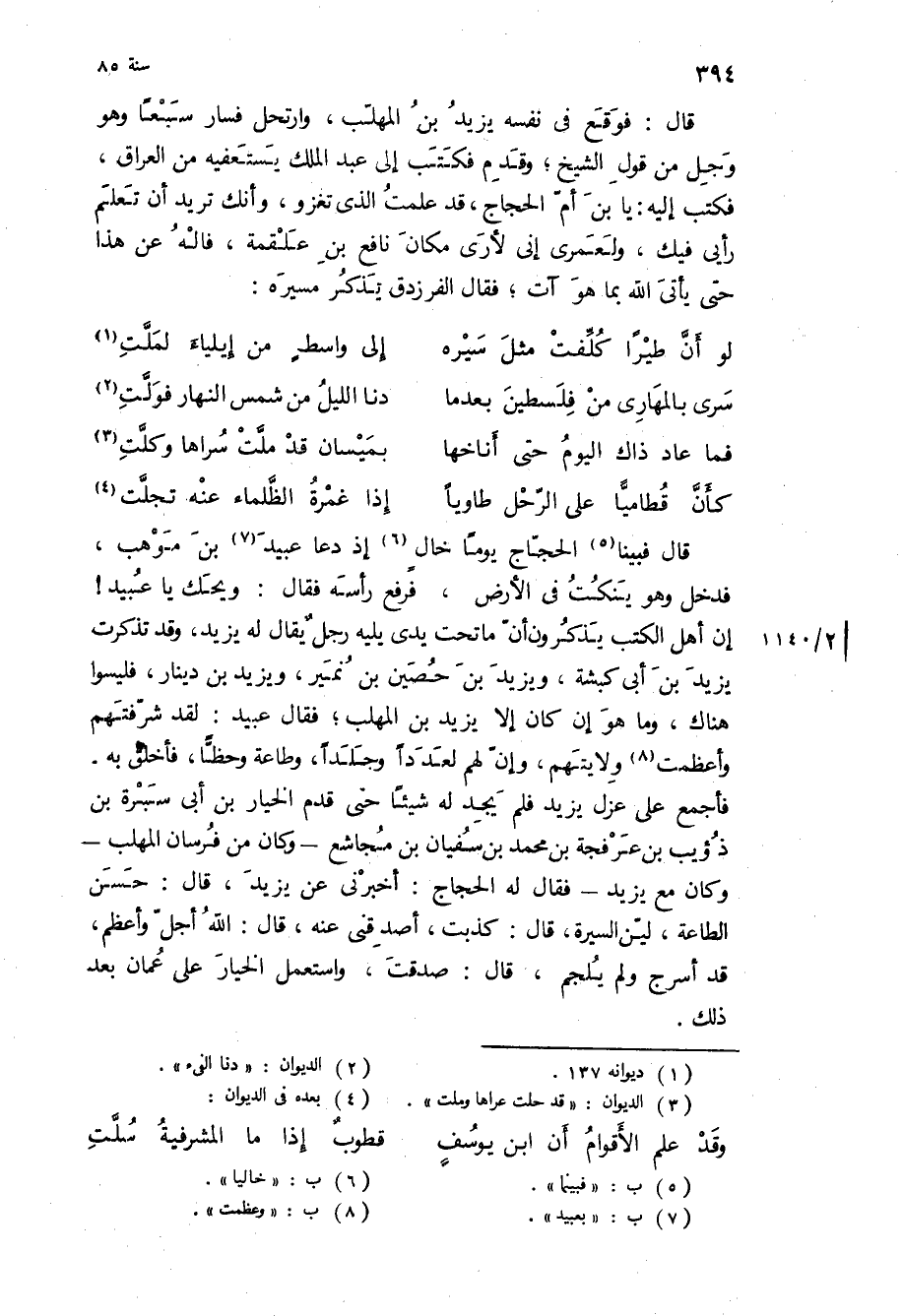 قال: فوقع في نفسه يزيد بن المهلب، وارتحل فسار سبعا وهو وجل من قول الشيخ، وقدم فكتب إلى عبد الملك يستعفيه من العراق، فكتب اليه: يا بن أم الحجاج، قد علمت الذي تغزو، وأنك تريد أن تعلم رأيي فيك، ولعمري إني لأرى مكان نافع بن علقمة، فاله عن هذا حتى يأتي الله بما هو آت، فقال الفرزدق يذكر مسيره: