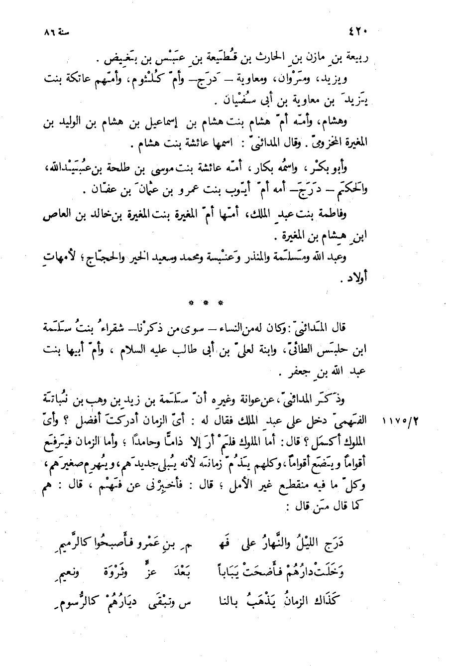 وذكر المدائني، عن عوانة وغيره أن سلمة بن زيد بن وهب بن نباتة الفهمي دخل على عبد الملك فقال له: أي الزمان أدركت أفضل؟ وأي الملوك أكمل؟ قال: أما الملوك فلم أر إلا ذاما وحامدا، وأما الزمان فيرفع أقواما ويضع أقواما، وكلهم يذم زمانه لأنه يبلي جديدهم، ويهرم صغيرهم، وكل ما فيه منقطع غير الأمل، قال: فأخبرني عن فهم، قال: هم كما قال من قال:
