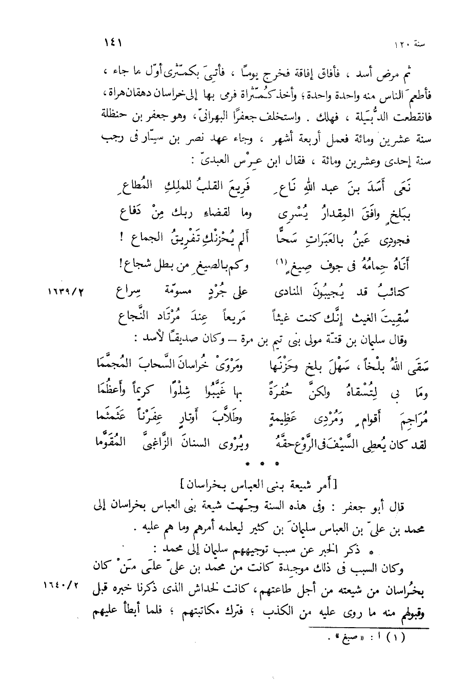قَالَ أبو جعفر: وفي هذه السنة وجهت شيعة بني العباس بخراسان إلى محمد بْن علي بْن العباس سليمان بْن كثير ليعلمه أمرهم وما هم عليه.