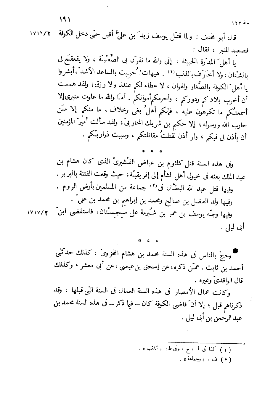 وفيها وجه يوسف بْن عمر بْن شبرمة على سجستان، فاستقضى ابن أبي ليلى.