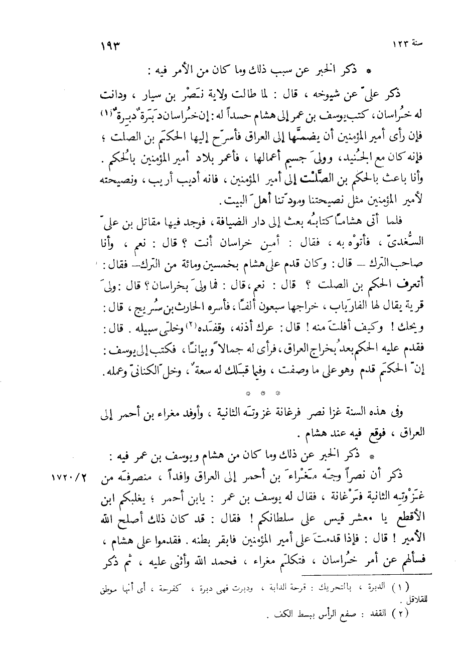 ذكر الخبر عن ذَلِكَ وما كَانَ من هشام ويوسف بْن عمر فيه: